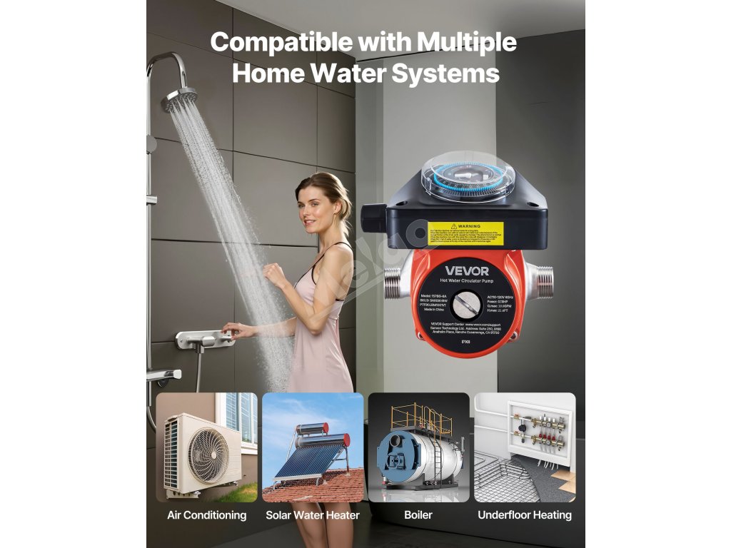 Toto obehové čerpadlo teplej vody, ktoré je kompatibilné s domácimi beztlakovými vodnými systémami, dodáva okamžitú teplú vodu vo viacerých aplikáciách. Vychutnajte si väčší komfort pre celú rodinu a zároveň znížte spotrebu energie, obmedzte plytvanie vodou a ušetrite peniaze.