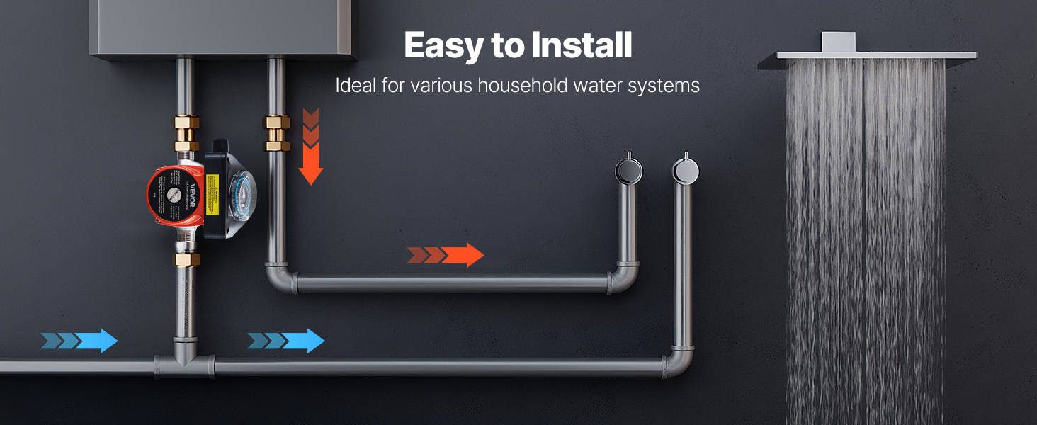 Premyslene vybavené zabudovaným obtokovým ventilom sa toto obehové čerpadlo teplej vody inštaluje priamo na výstup vášho ohrievača vody. Nie je potrebné nič dokupovať. Nie je potrebné upravovať existujúce rozvody vody - rýchlo si vychutnajte cirkuláciu teplej vody v celom dome.