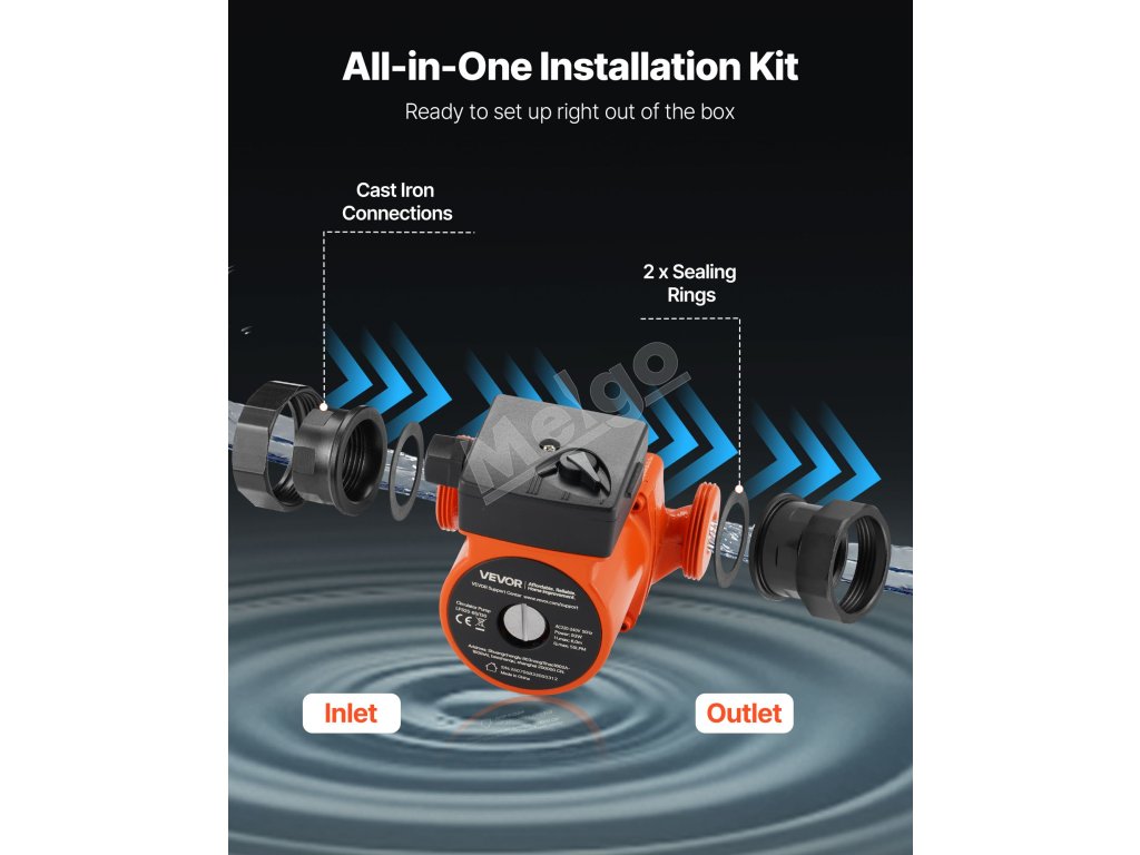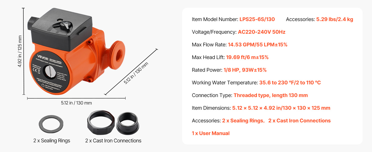 Toto liatinové obehové čerpadlo je vyrobené z kvalitnej liatiny, ktorá poskytuje odolnosť a stabilitu na dlhodobé používanie s minimálnou údržbou. Jeho silný výkon zvyšuje účinnosť cirkulácie teplej vody, rýchlo ohrieva vnútorné priestory a spĺňa každodenné potreby cirkulácie teplej vody.