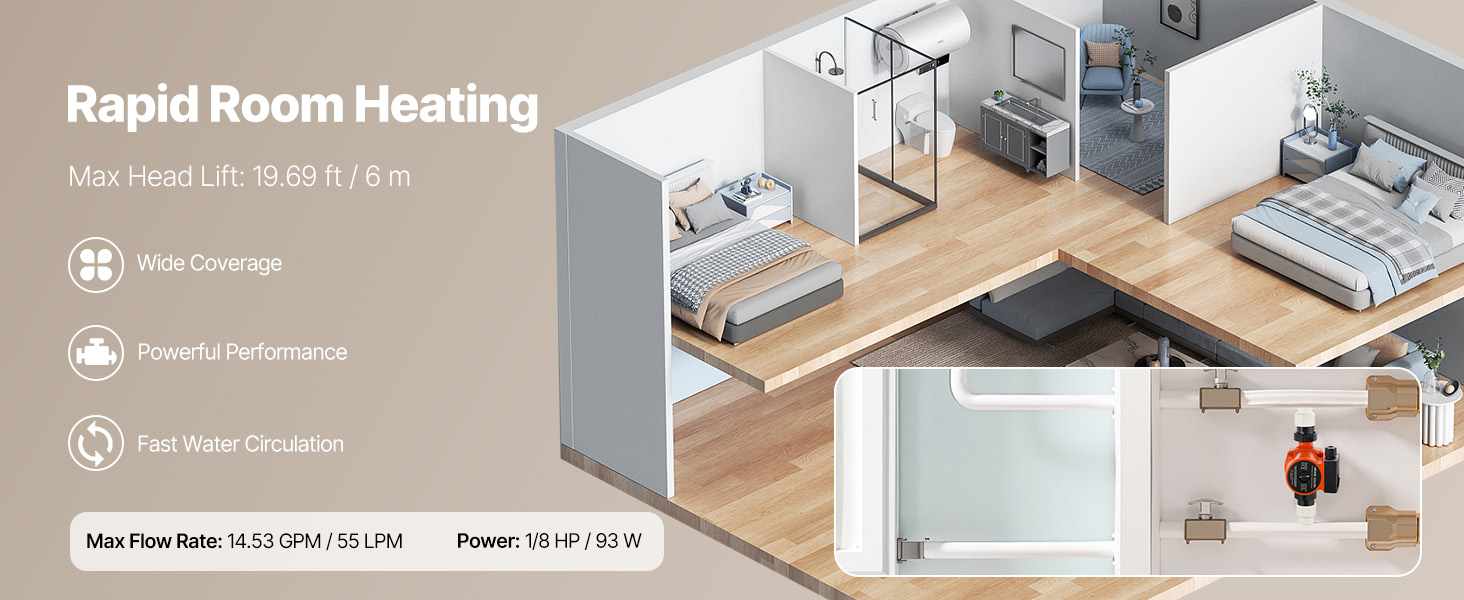 Naše čerpadlo na teplú vodu je kompatibilné s rôznymi vykurovacími zariadeniami, ako sú podlahové vykurovanie, radiátory, závesné kotly a bojlery, čím ľahko uspokojí potreby cirkulácie teplej vody v rôznych scenároch.