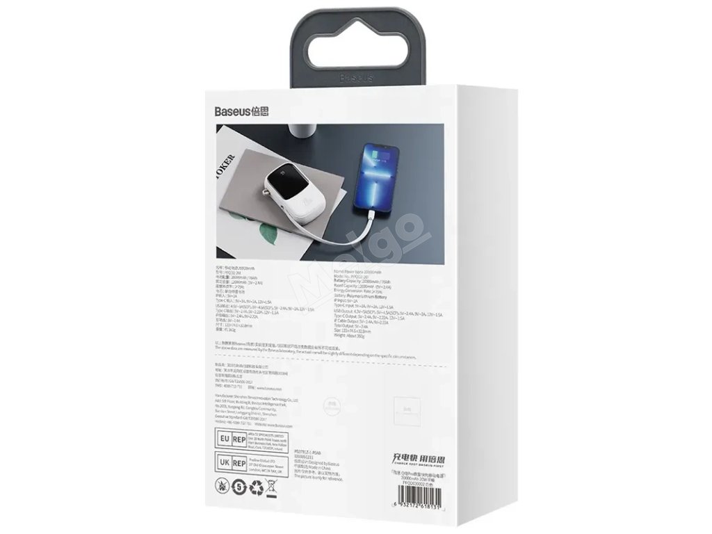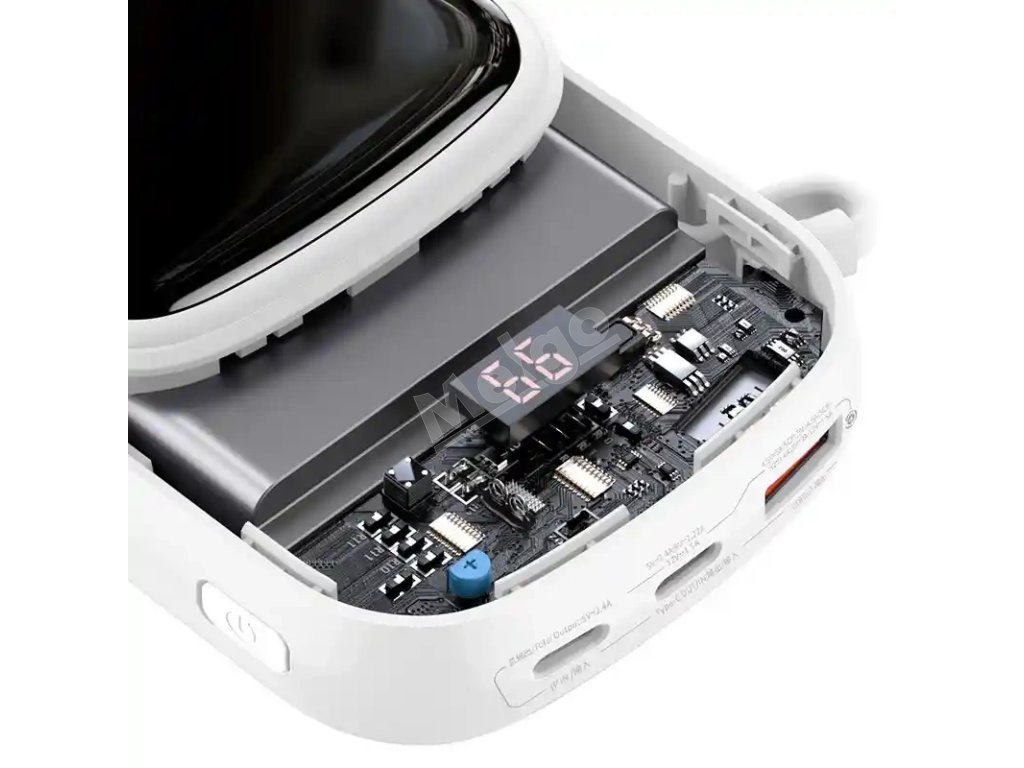 Premyslený dizajn powerbanky sa premieta do vysokého komfortu používania. Prehľadný displej poskytuje informácie o stave batérie a vďaka nízkej hmotnosti výrobok nespôsobuje problémy pri preprave. Praktický klip umožňuje skryť koniec zabudovaného kábla, takže sa nemusíte obávať jeho poškodenia.