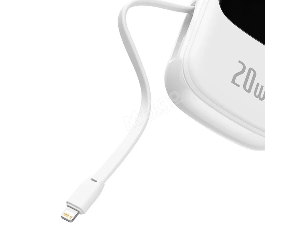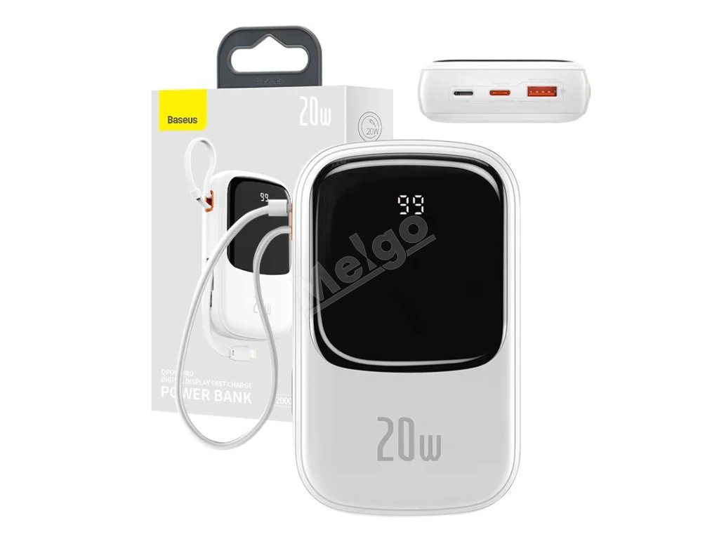 Powerbank Baseus Qpow PRO s káblom, 20000 mAh, 20 W (biela)