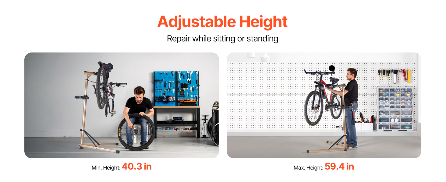 Stojan na opravu bicyklov je po rozložení pripravený na použitie a ponúka široký rozsah zdvíhania, ktorý ľahko spĺňa potreby výšky opravy dospelých aj detí.