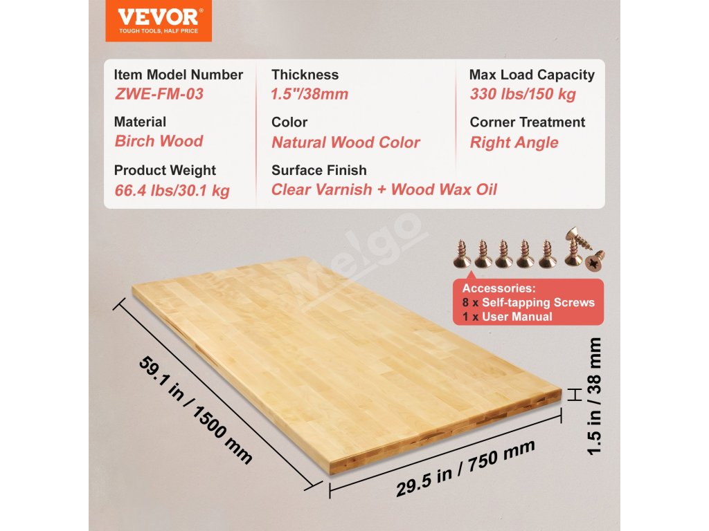 Javorová doska na stôl 59.1"×29.5"×1.5", nosnosť 330lb, na stojací rám