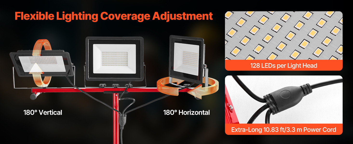 Každá z troch hláv nášho prenosného pracovného svetla sa dá nezávisle otáčať o 360° a ovládať samostatnými spínačmi. Sú tiež odnímateľné, čo umožňuje rôzne spôsoby použitia, ako je montáž na stenu a osvetlenie pevného bodu, aby vyhovovali rôznym scenárom osvetlenia.