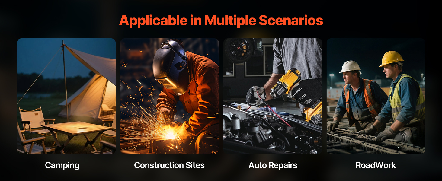 Naše stavebné svetlo je nielen profesionálne pracovné svetlo, ale aj ideálna voľba pre domácich používateľov. Široké použitie vhodné pre kempingové osvetlenie, núdzové opravy na cestách, údržbu vozidiel, dekoráciu domácnosti a ďalšie.