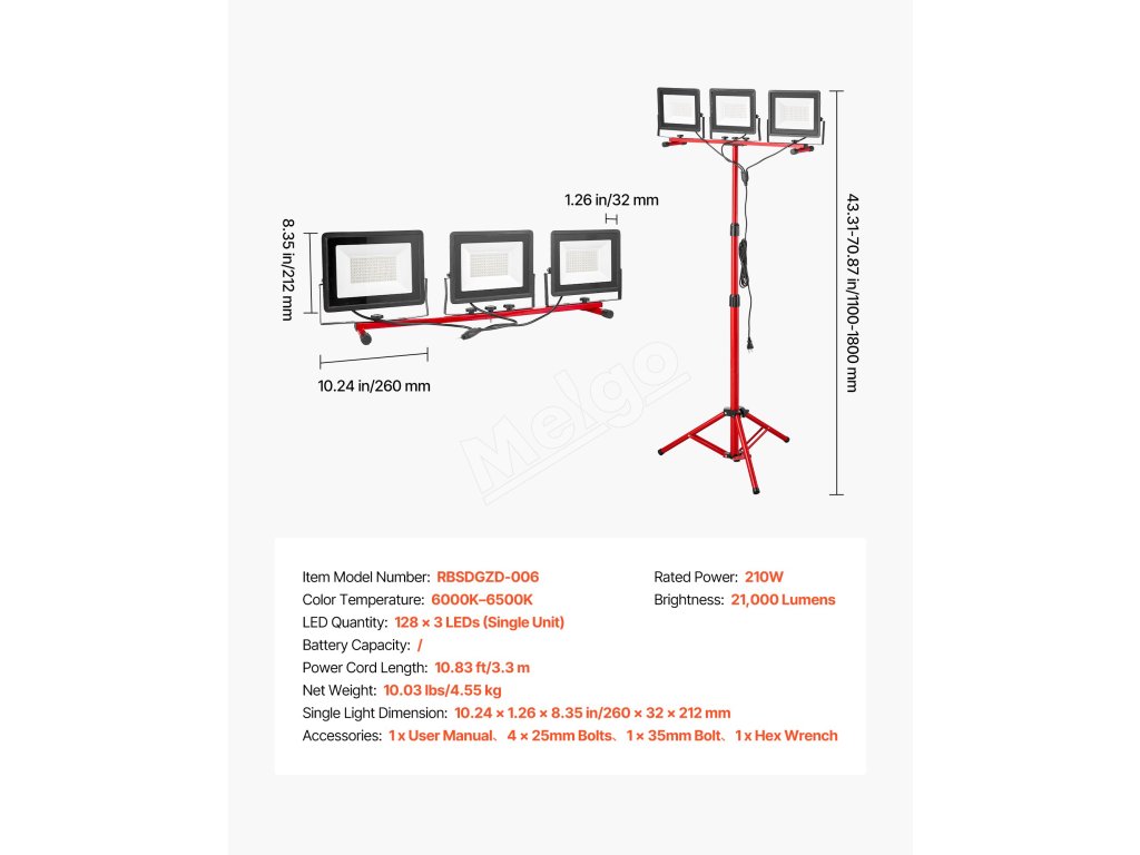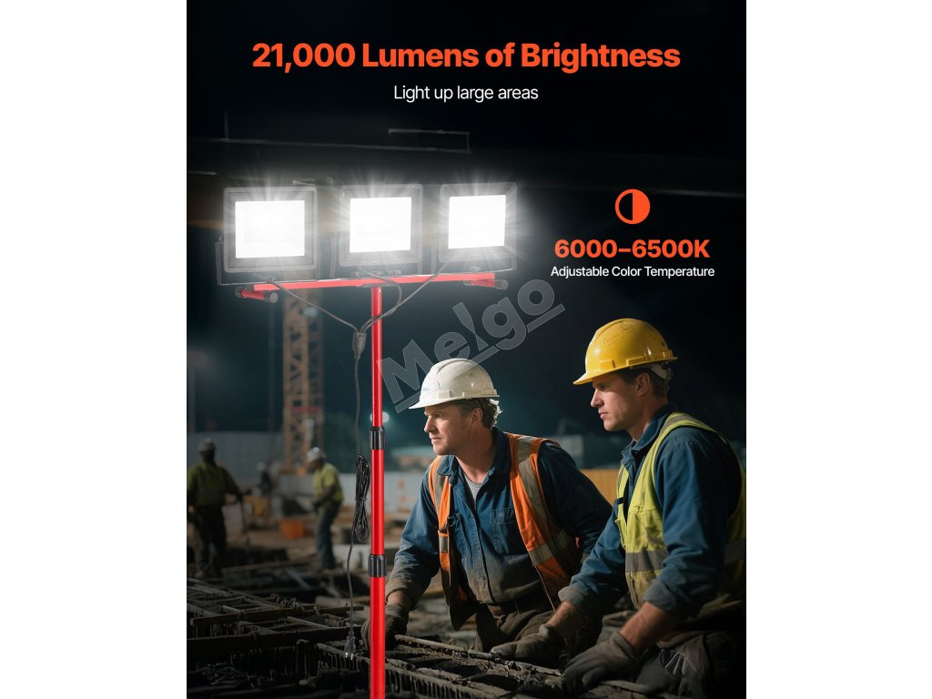 Naše LED pracovné svetlo so stojanom podporuje prepínanie z teplej bielej farby 6000 K na studenú bielu farbu 6500 K s nastaviteľnou jasnosťou až do 21 000 lúmenov. To pomáha uspokojiť rôzne potreby, ako je nočná práca, osvetlenie dvora alebo vytvorenie príjemného prostredia.