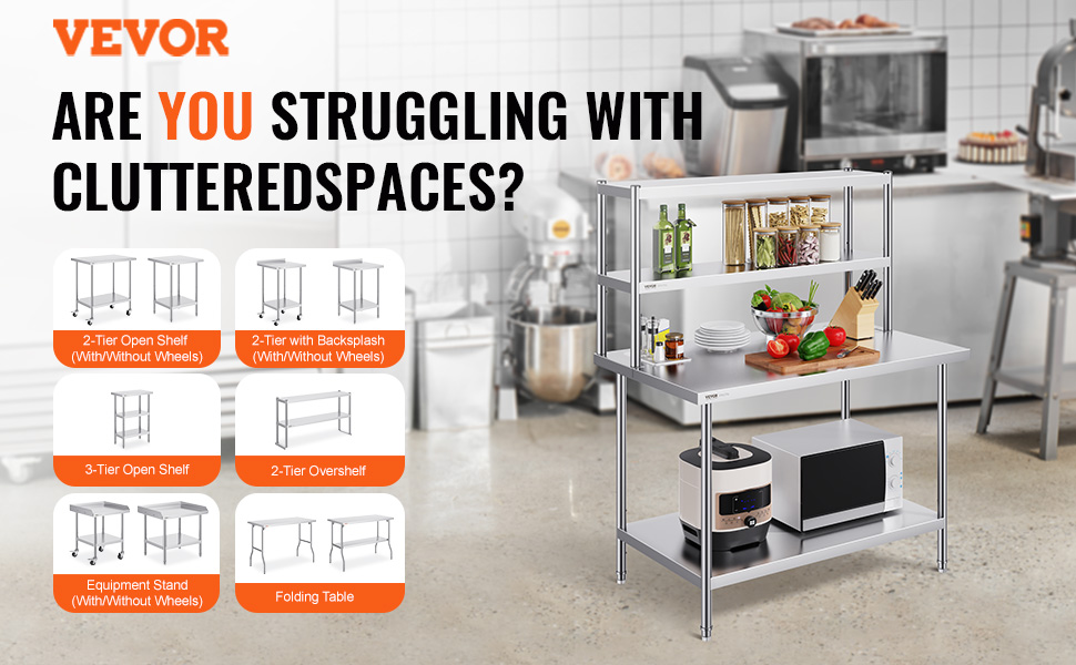 Pracovné stoly VEVOR z nehrdzavejúcej ocele so štýlovým dizajnom
