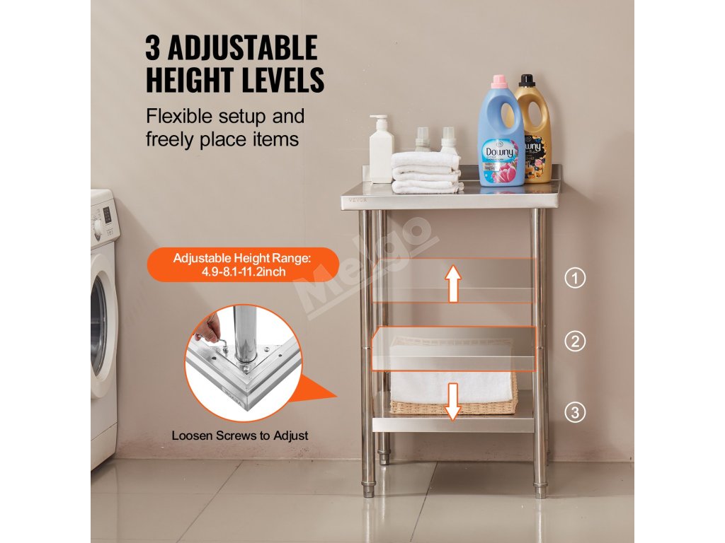 Nerezový pracovný stôl 24×24×36 inch, s nastaviteľnou výškou