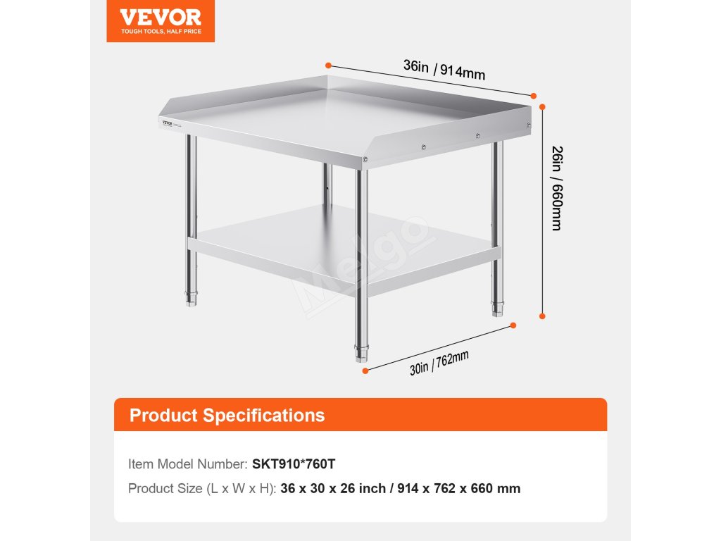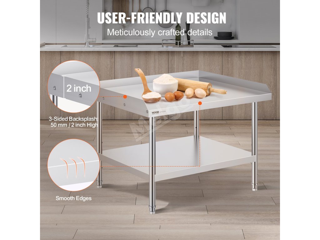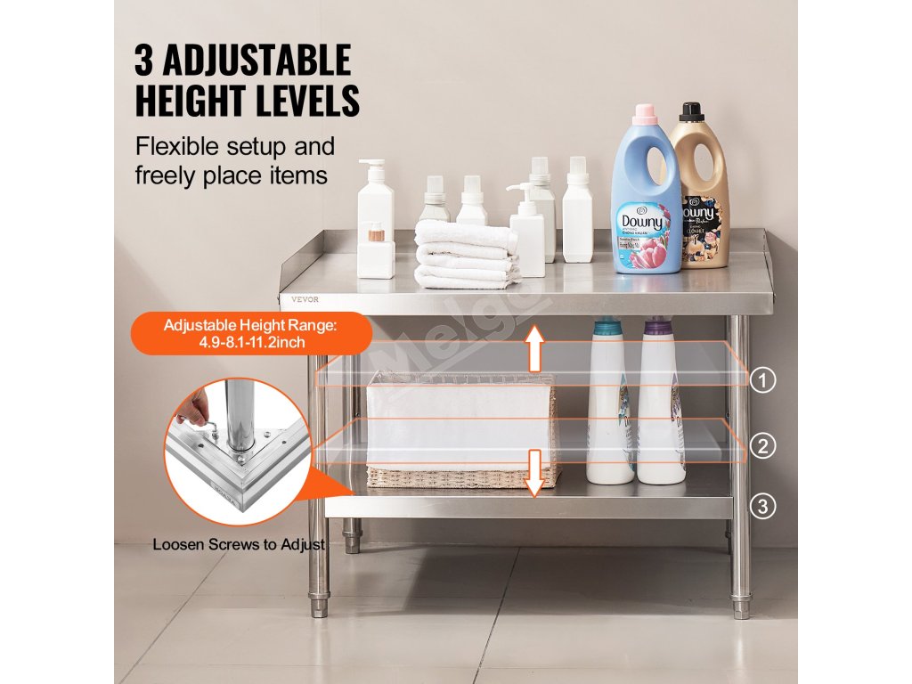 Nerezový pracovný stôl 30×36×26 inch, 3-stranný lem výška nastaviteľná