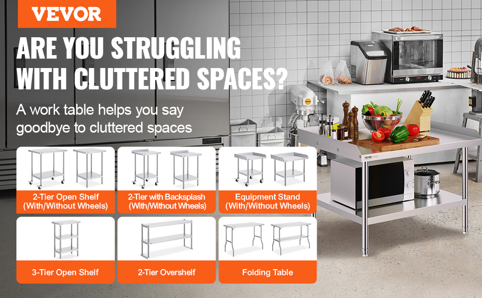 Pracovné stoly VEVOR z nehrdzavejúcej ocele so štýlovým dizajnom