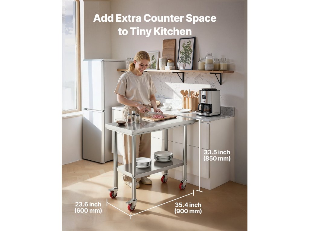 Nastaviteľná polica kovového prípravného stola ponúka najviac užívateľsky prívetivých a praktických funkcií. Výšku police jednoducho nastavíte pomocou skrutiek tak, aby sa prispôsobila veľkosti položiek, ktoré potrebujete uložiť.