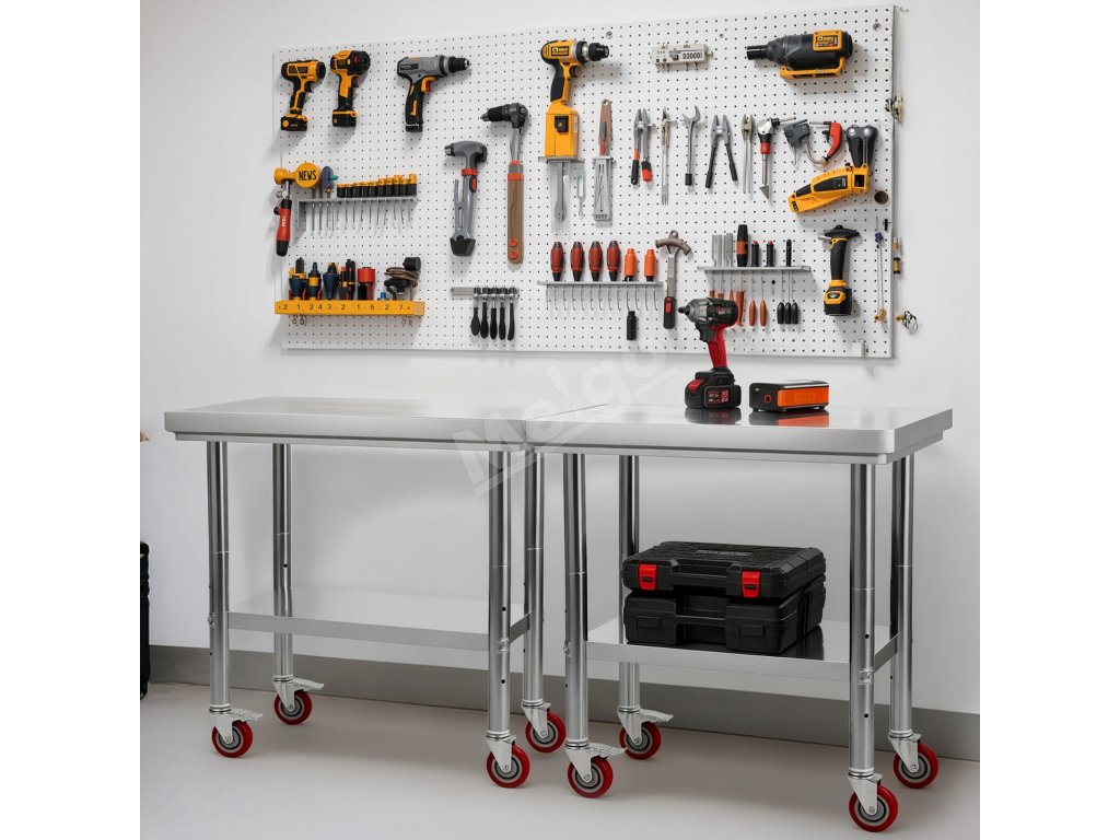 Pracovný stôl z nehrdzavejúcej ocele má štýlový a odolný dizajn, hodí sa do kuchýň, garáží, dielní, barov, reštaurácií, škôl, nemocníc alebo skladov - je ideálny ako pracovný alebo opravárenský stôl do akéhokoľvek priestoru.