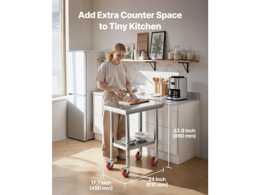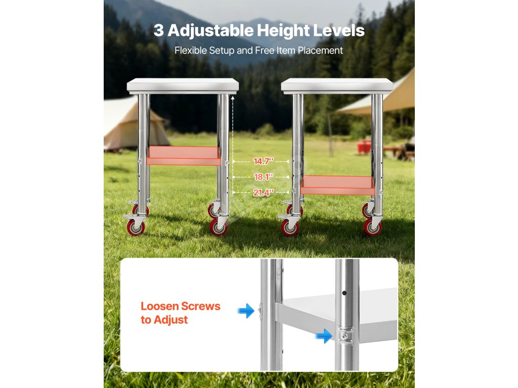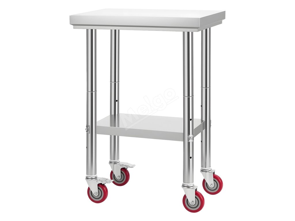 Nastaviteľná polica kovového prípravného stola ponúka najviac užívateľsky prívetivých a praktických funkcií. Výšku police jednoducho nastavíte pomocou skrutiek tak, aby sa prispôsobila veľkosti položiek, ktoré potrebujete uložiť.