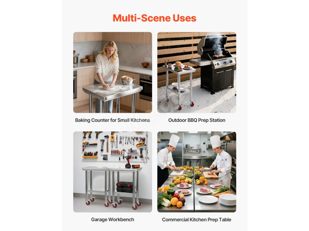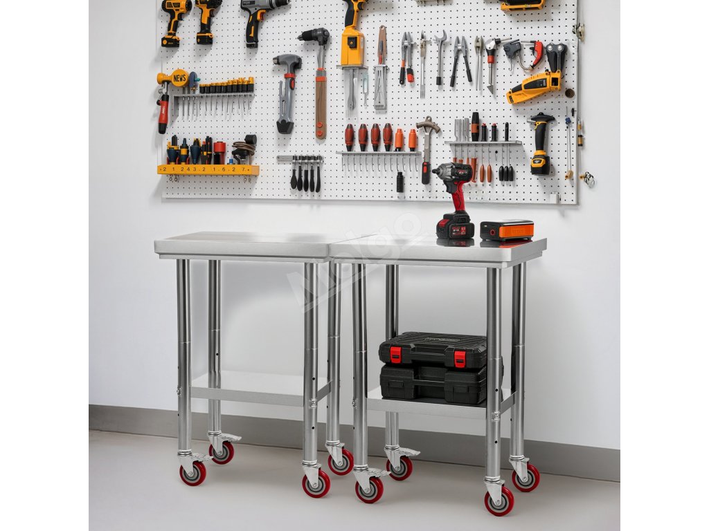 Pracovný stôl z nehrdzavejúcej ocele má štýlový a odolný dizajn, hodí sa do kuchýň, garáží, dielní, barov, reštaurácií, škôl, nemocníc alebo skladov - je ideálny ako pracovný alebo opravárenský stôl do akéhokoľvek priestoru.