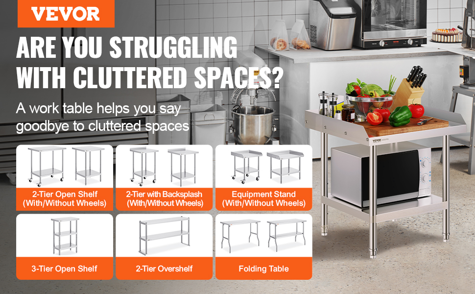 Pracovné stoly VEVOR z nehrdzavejúcej ocele so štýlovým dizajnom