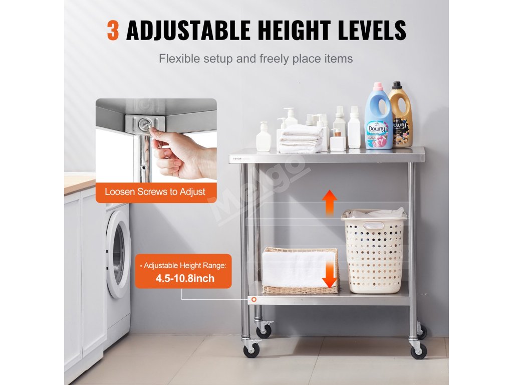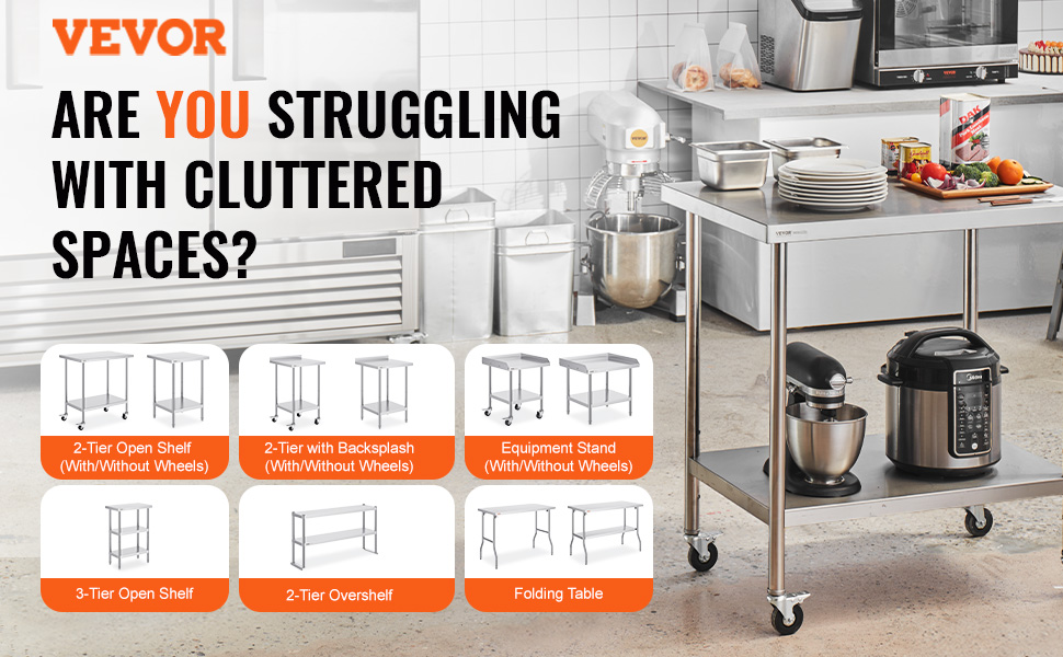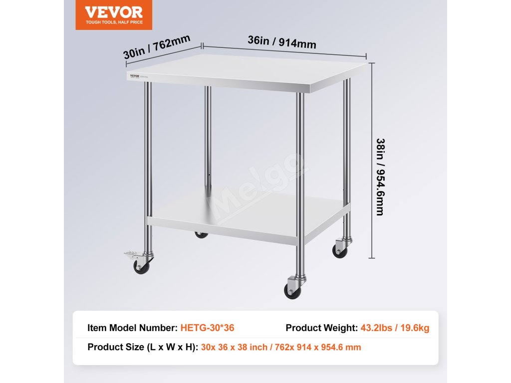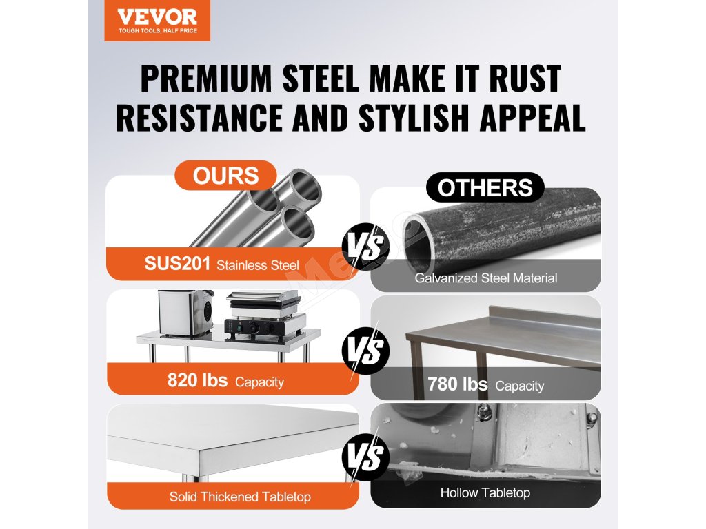 Pracovné stoly VEVOR z nehrdzavejúcej ocele so štýlovým dizajnom