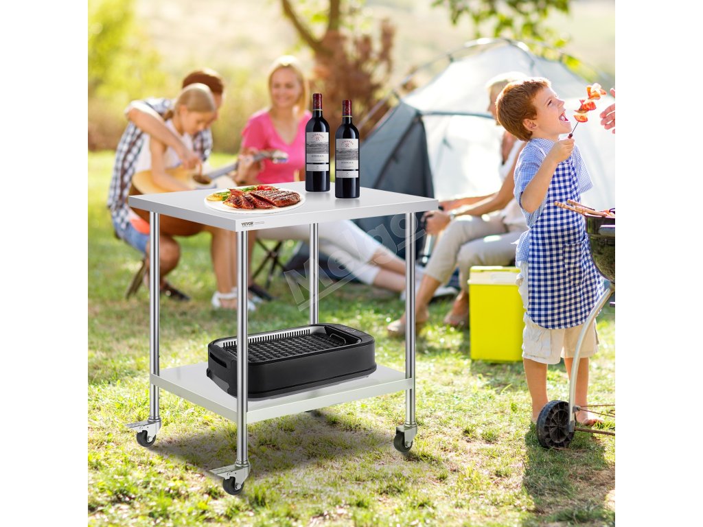 Pracovný stôl nerez 30×36×38 inch, 4 kolieska, 3 polohy výšky