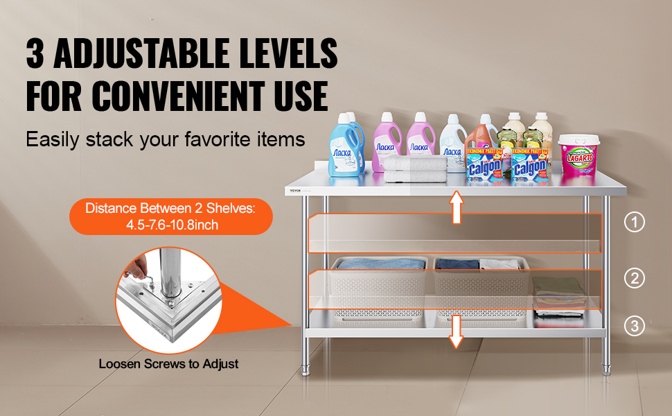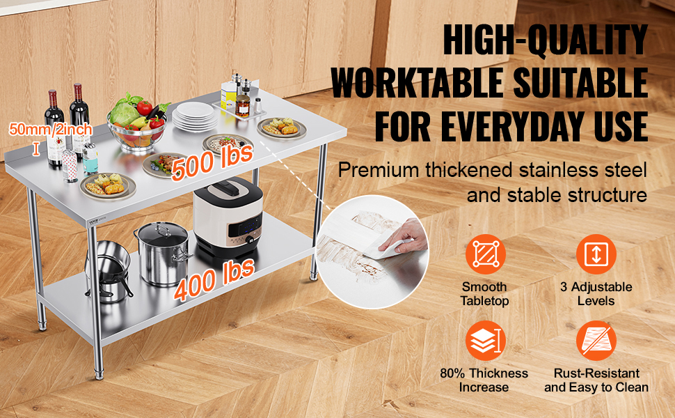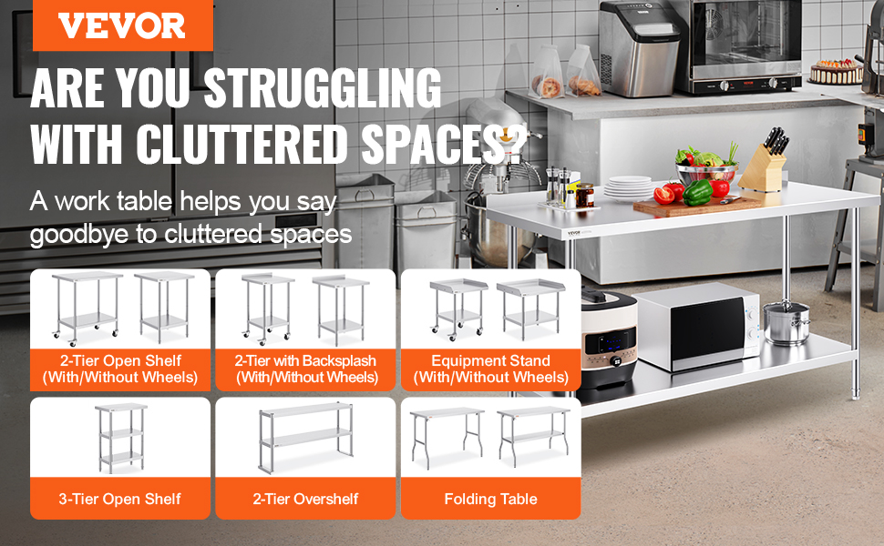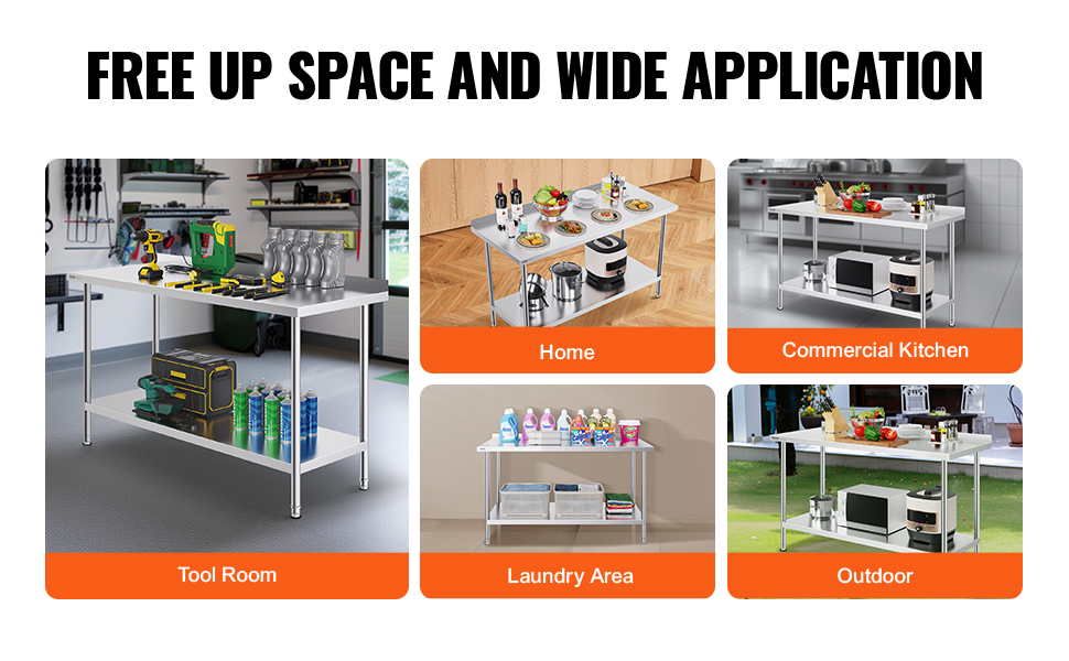 Pracovné stoly VEVOR z nehrdzavejúcej ocele so štýlovým dizajnom