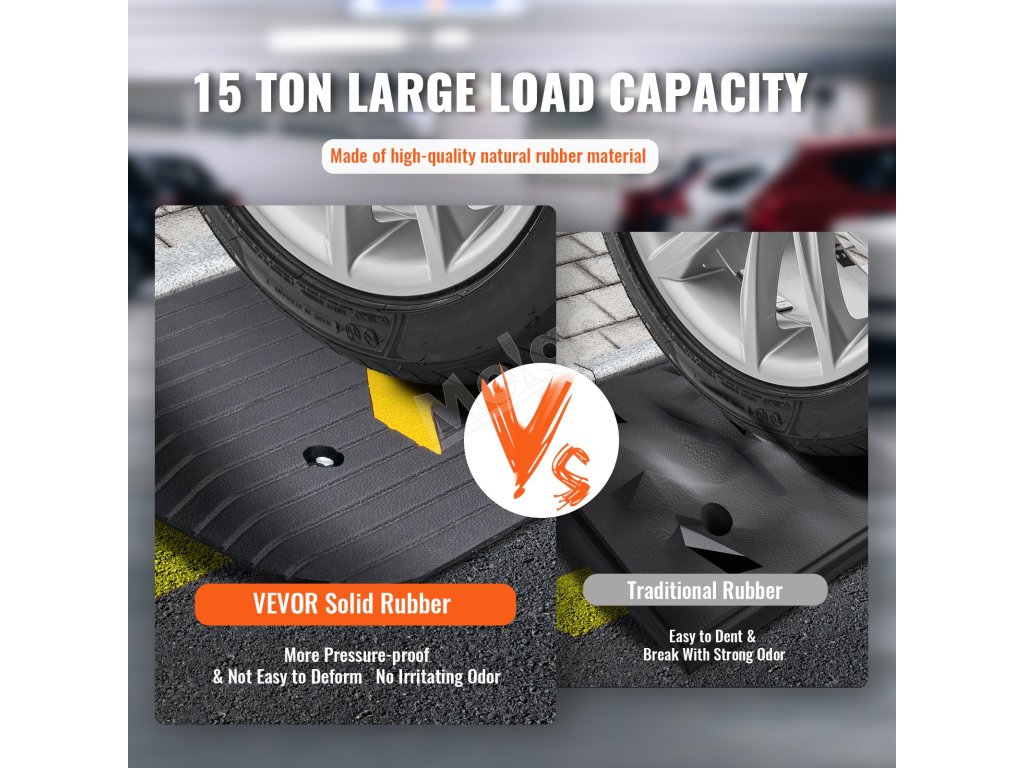 Odpoveď: Táto vylepšená obrubníková rampa VEVOR je vyrobená z prírodného gumového materiálu bez dráždivého zápachu a má len mierny gumový zápach, ktorý je pre ľudský organizmus neškodný. Uisťujeme vás.