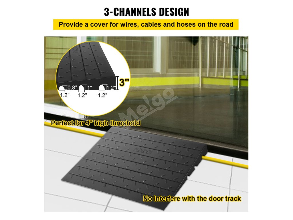 Gumová prahová rampa 3" výška, 3 drážky, 2200 lbs pre vozík/skúter