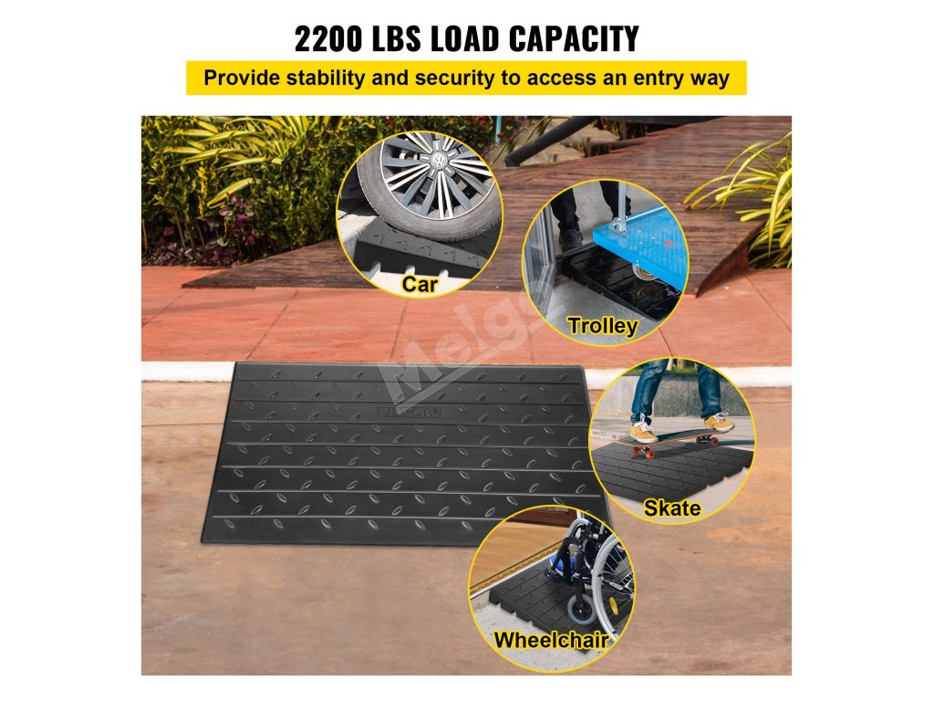 Táto prahová rampa je vhodná na použitie pri veľkom zaťažení. Má silnú nosnosť 2200 libier. Preto zabezpečuje hladký a bezpečný prechod pre invalidné vozíky a skútre medzi rôznymi úrovňami. Rampa je ideálna na použitie v obytných a komerčných priestoroch a zvládne hmotnosť väčšiny mobilných zariadení. Ľahký prístup k vyvýšeným dverám uľahčuje používateľom pohyb na miestach s rôznou výškou schodov. Tým sa predchádza potenciálnym rizikám spojeným s nerovnými povrchmi a schodmi.