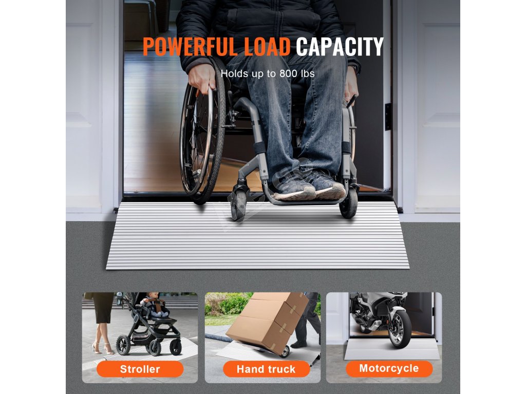 Naša prahová rampa s nosnosťou 800 kg poskytuje pevnú stabilitu. Ľahko sa vyklopíte, či už ste na invalidnom vozíku, na bicykli alebo tlačíte iné kolesové zázraky.