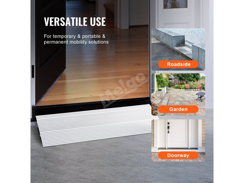 Prechádzajte cez prahy s ľahkosťou, či už s detskými kočíkmi, vozíkmi na batožinu alebo inými. Máte záhradu alebo terasu? Naša rampa pre kolobežky tieto schodíkové rozdiely vyžehlí.