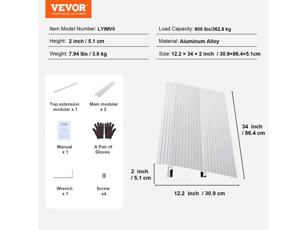 Prahová rampa 2" výška, 800 lbs nosnosť, nastaviteľná pre vozíky