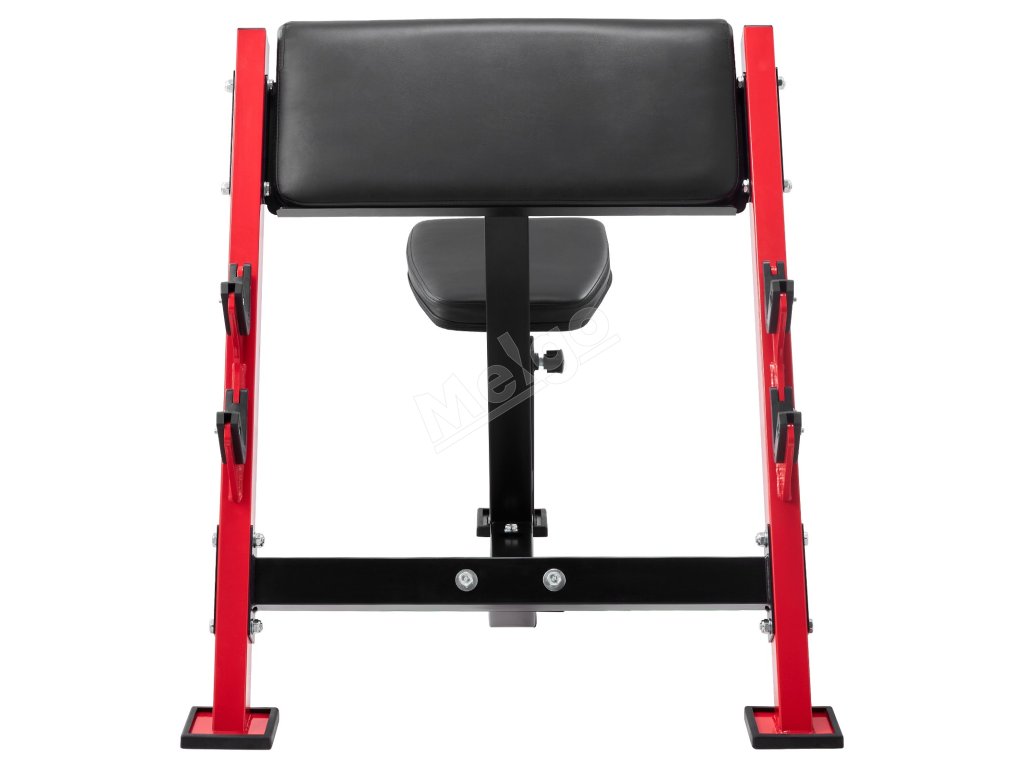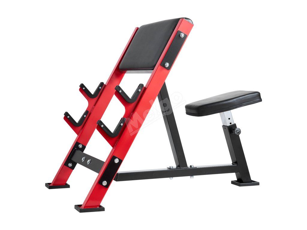 Táto posilňovacia lavica na bicepsy, skonštruovaná s pevným oceľovým rámom a trojuholníkovou základňou, ponúka vynikajúcu stabilitu a odolnosť. Je navrhnutá tak, aby zvládla náročné tréningy, vďaka čomu je spoľahlivým doplnkom každého fitness priestoru.