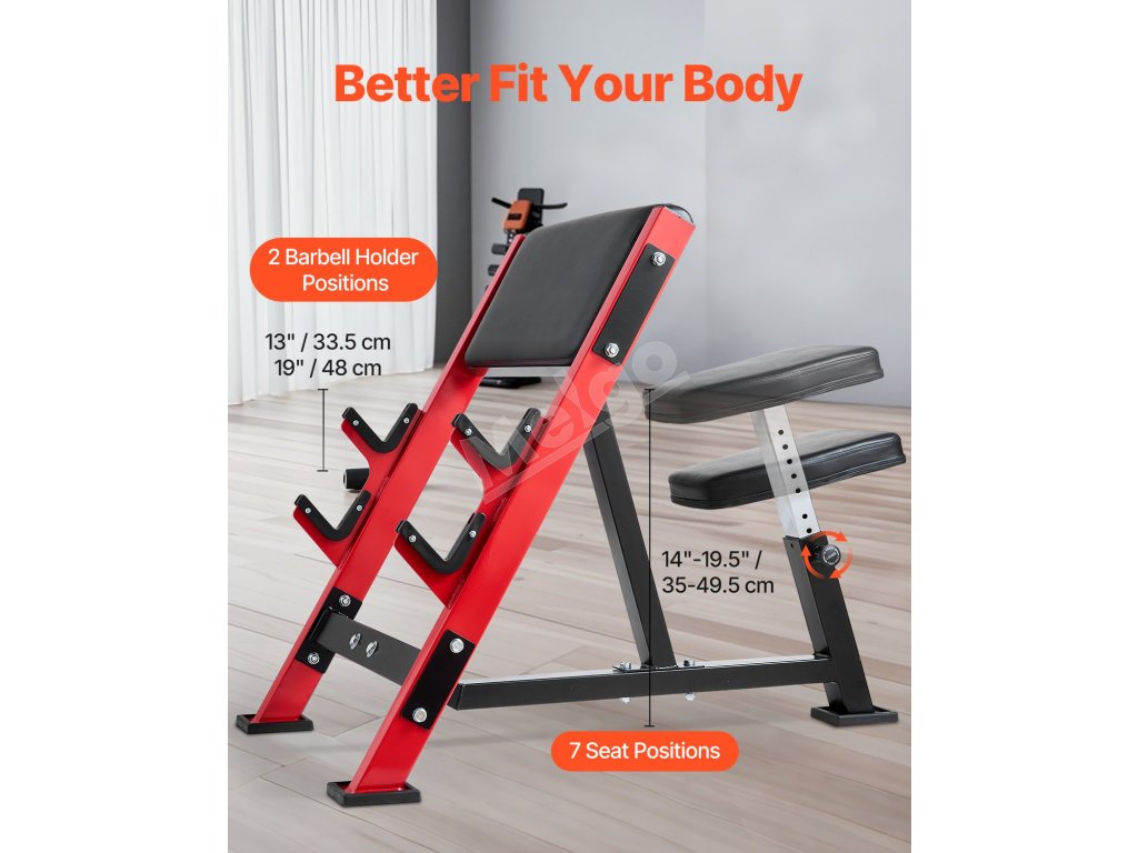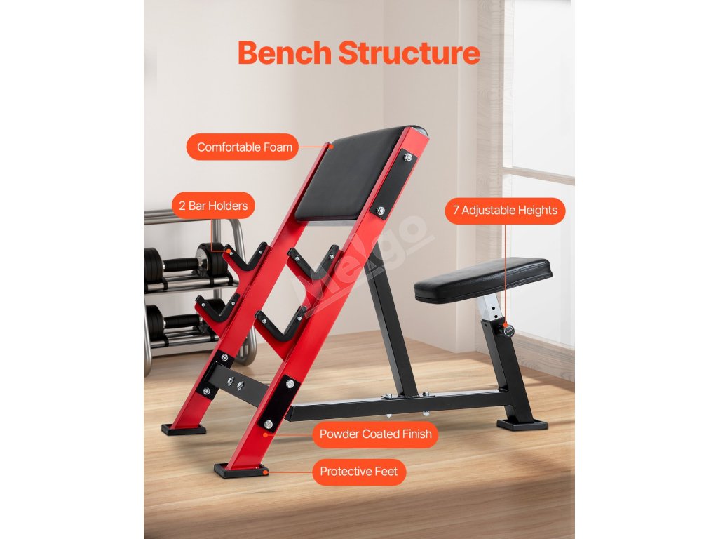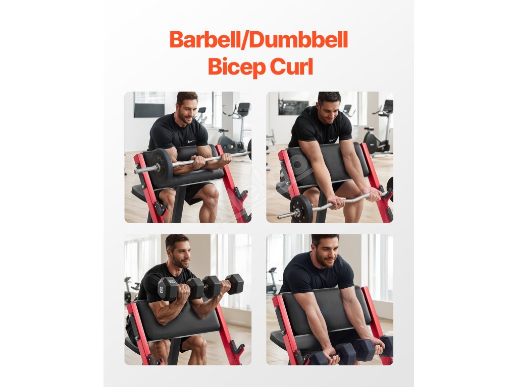 Lavička na biceps, nastaviteľná s držiakmi na činku, 660 LBS