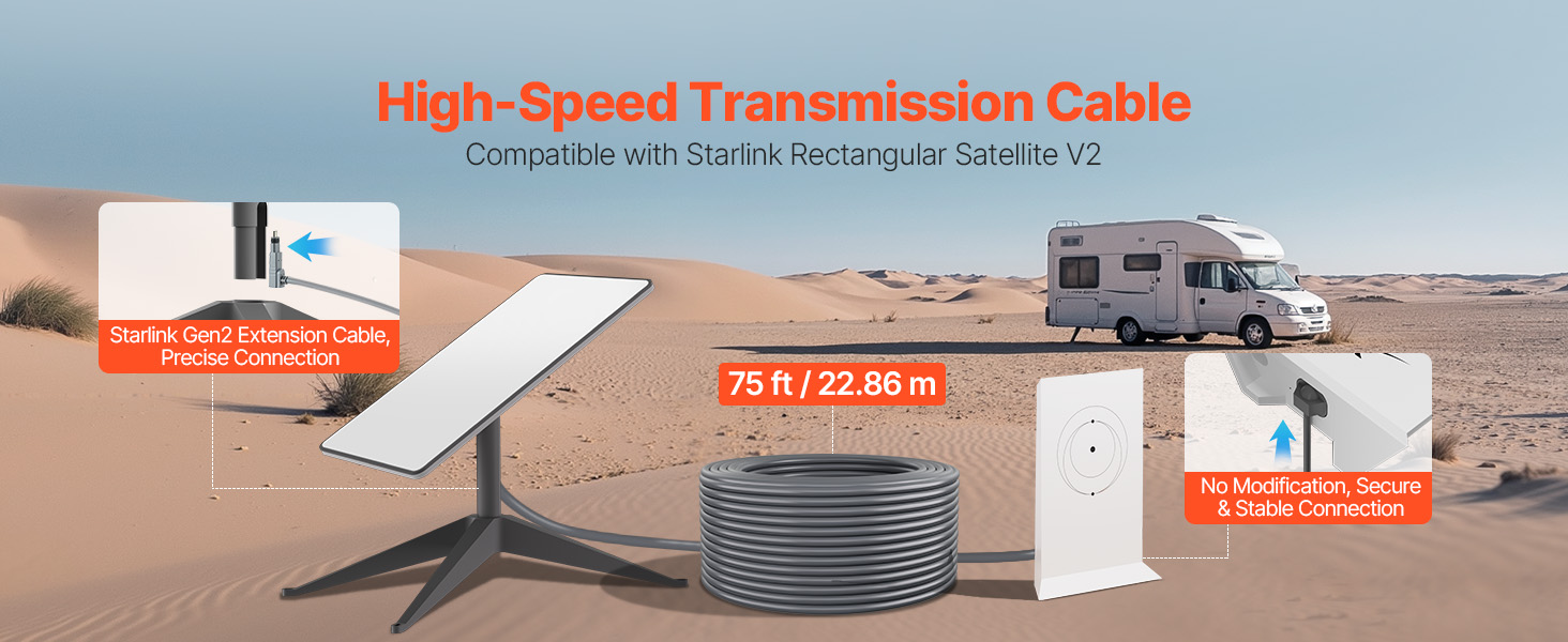 Tento extra dlhý predlžovací kábel Starlink je univerzálny, vhodný na výlety s karavanom, plavbu loďou, kempovanie a zapojenie v záhrade. Vychutnajte si plynulé pripojenie k internetu kedykoľvek a kdekoľvek, čo je ideálne pre rodinné aktivity vonku, prácu na diaľku a ďalšie.