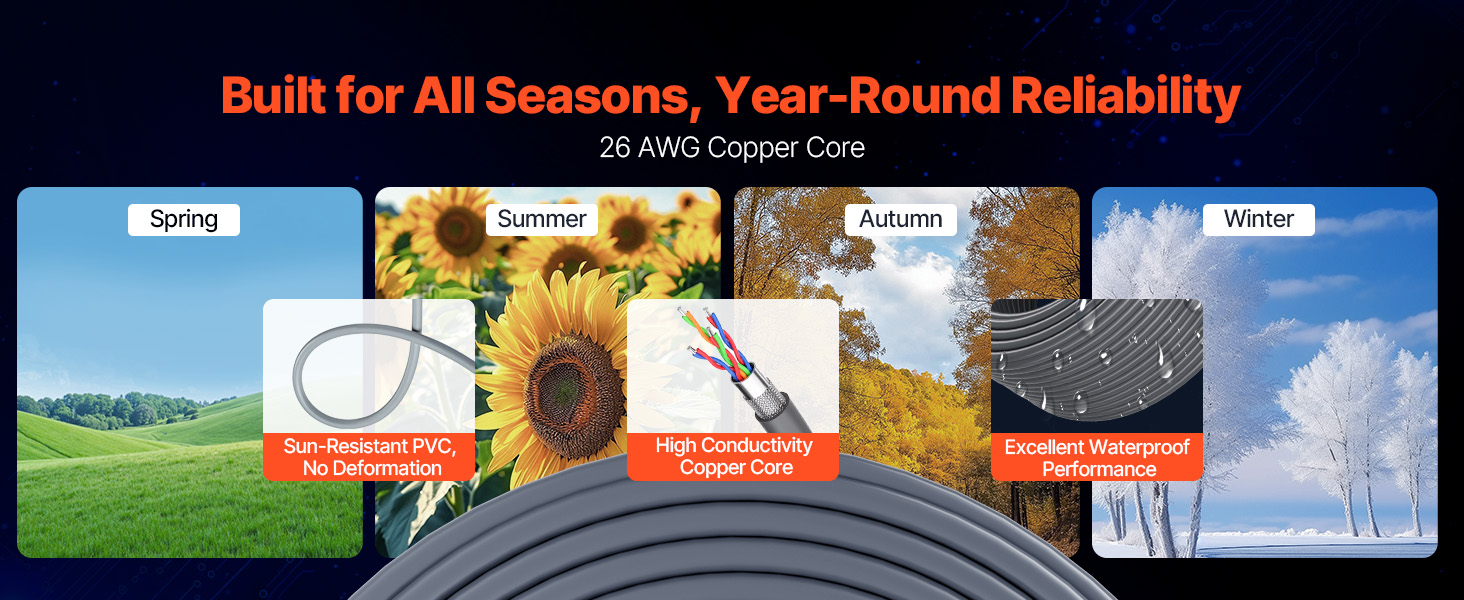 Náš kábel Starlink Gen2 má plášť z PVC s vysokou hustotou a vysoko vodivé medené jadro, ktoré je odolné voči extrémnym teplotám od -4 °F do 167 °F. Odoláva teplu, chladu, vetru a snehu, čím zabezpečuje plynulú sieť. Vaša spoľahlivá voľba pre vonkajšie použitie Starlink.