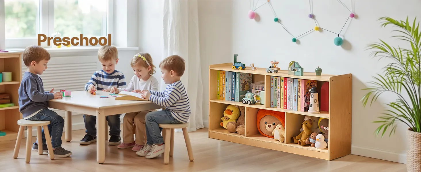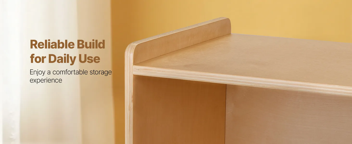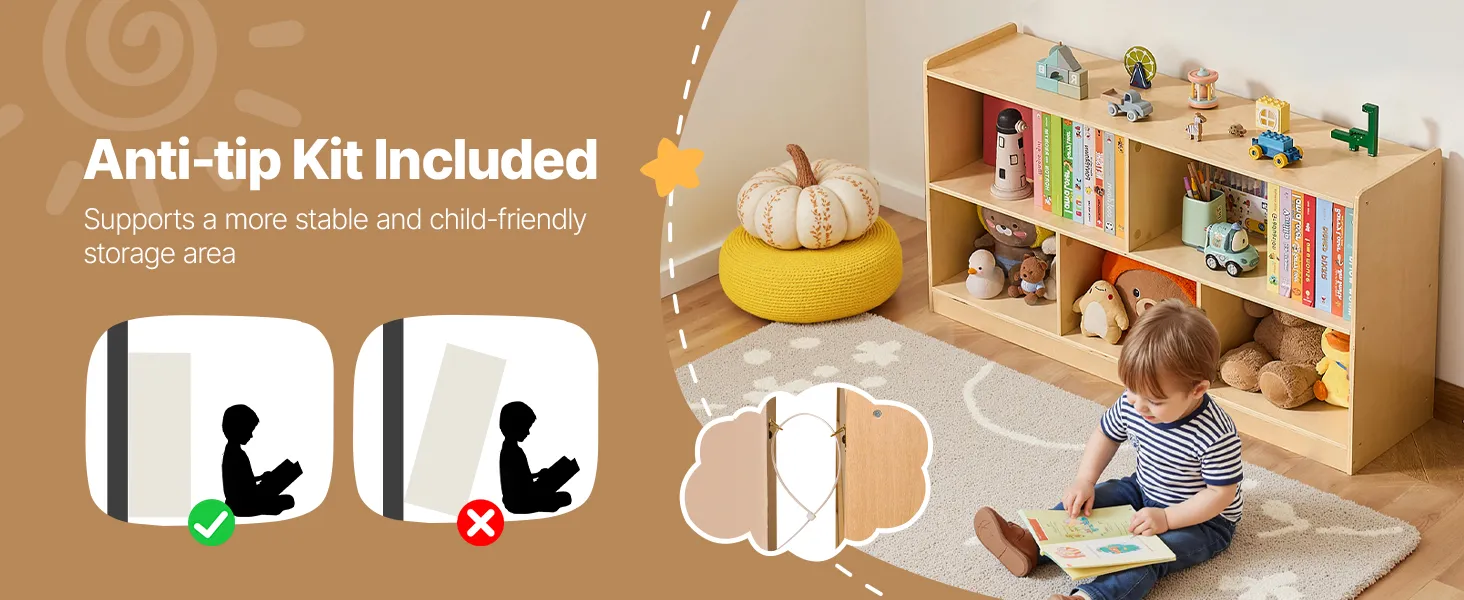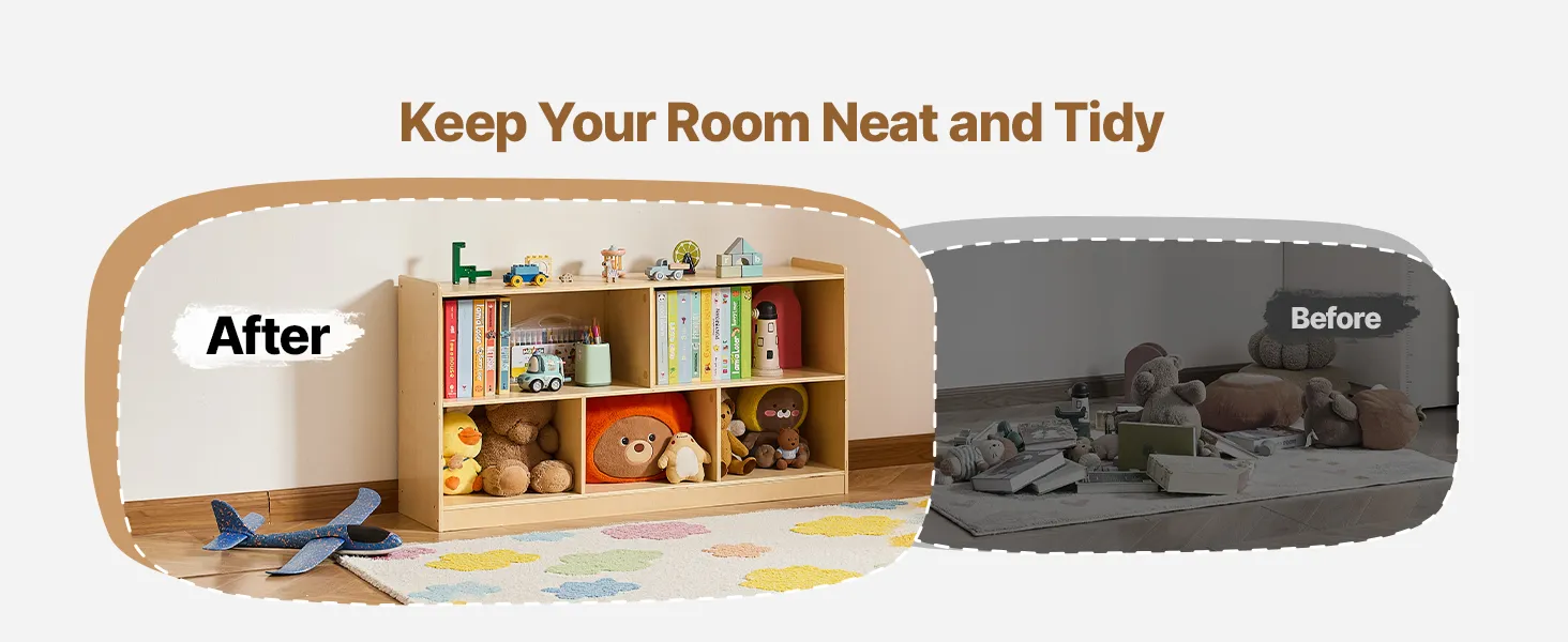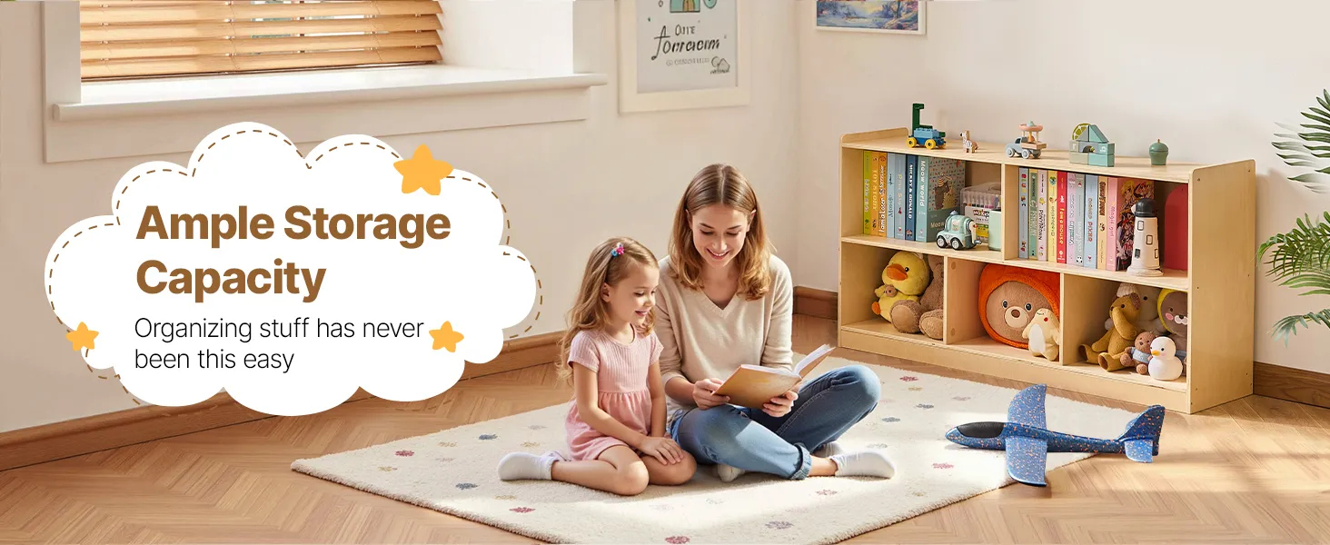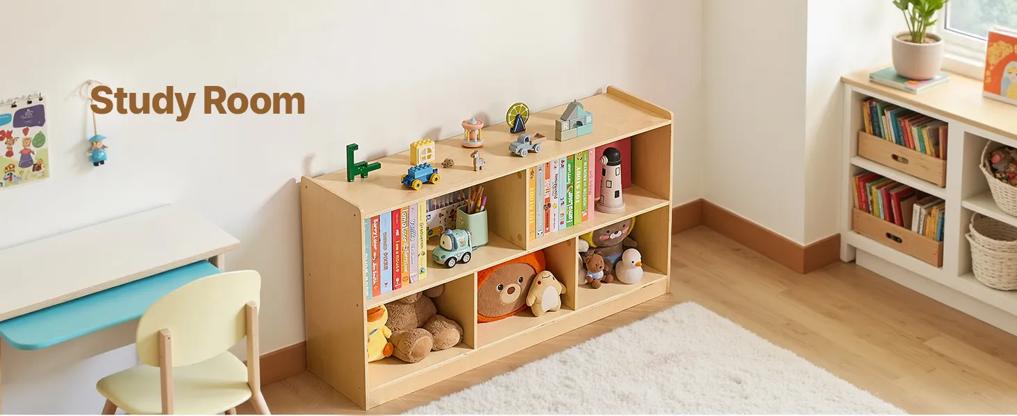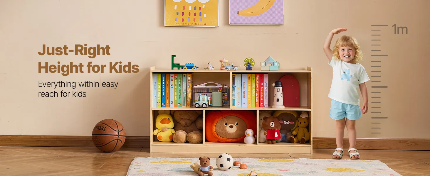 Táto polica montessori pojme oblečenie, batohy, školské potreby a osobné veci. Priestranné priehradky a flexibilné usporiadanie pomáhajú udržiavať poriadok v akomkoľvek priestore, v triede, spálni alebo herni a uľahčujú deťom samostatné upratovanie.