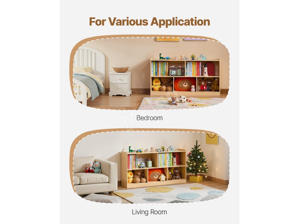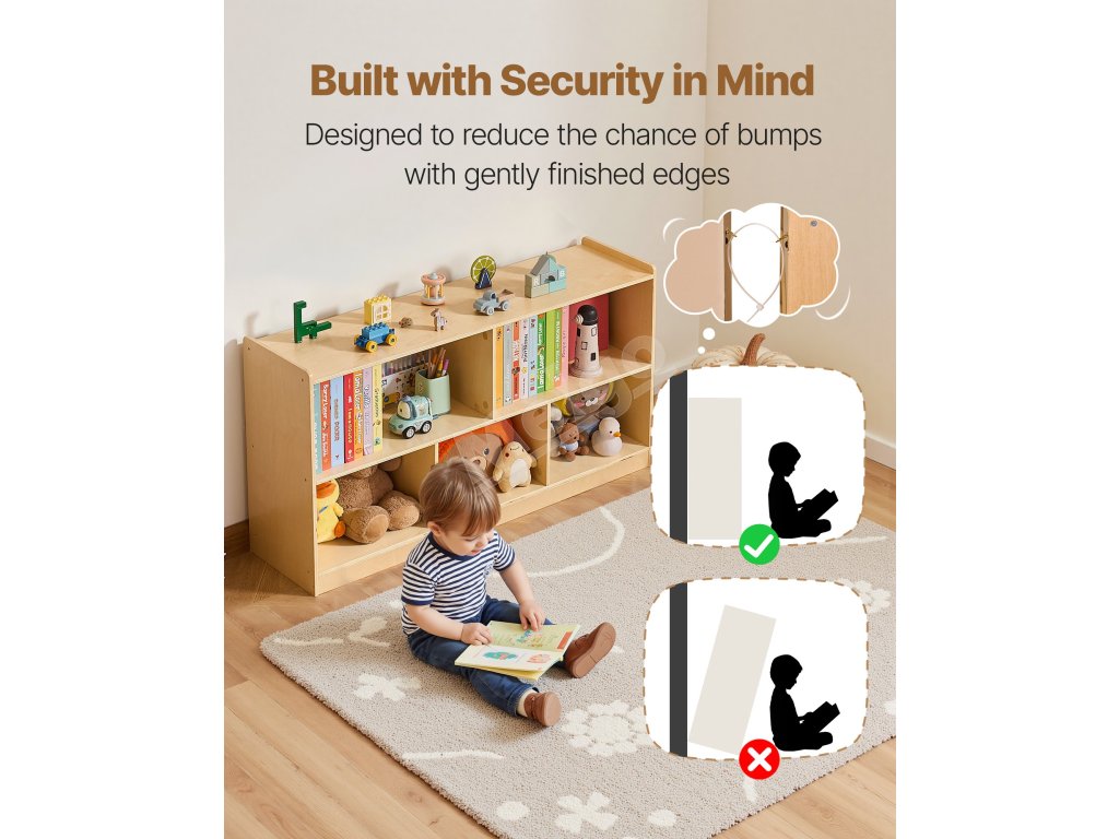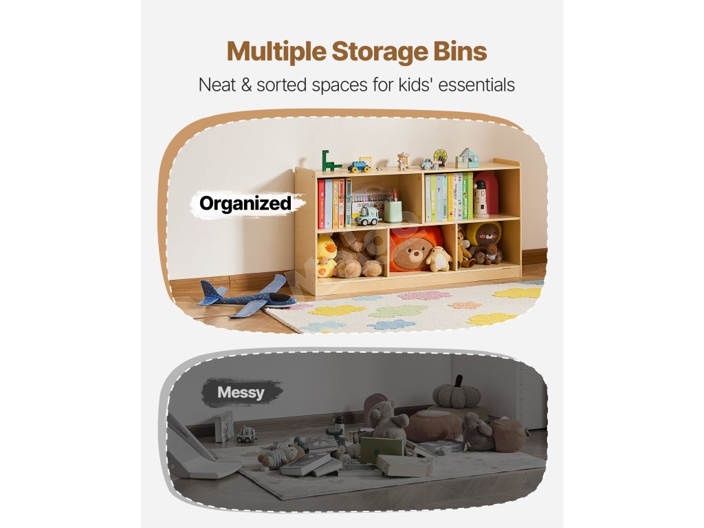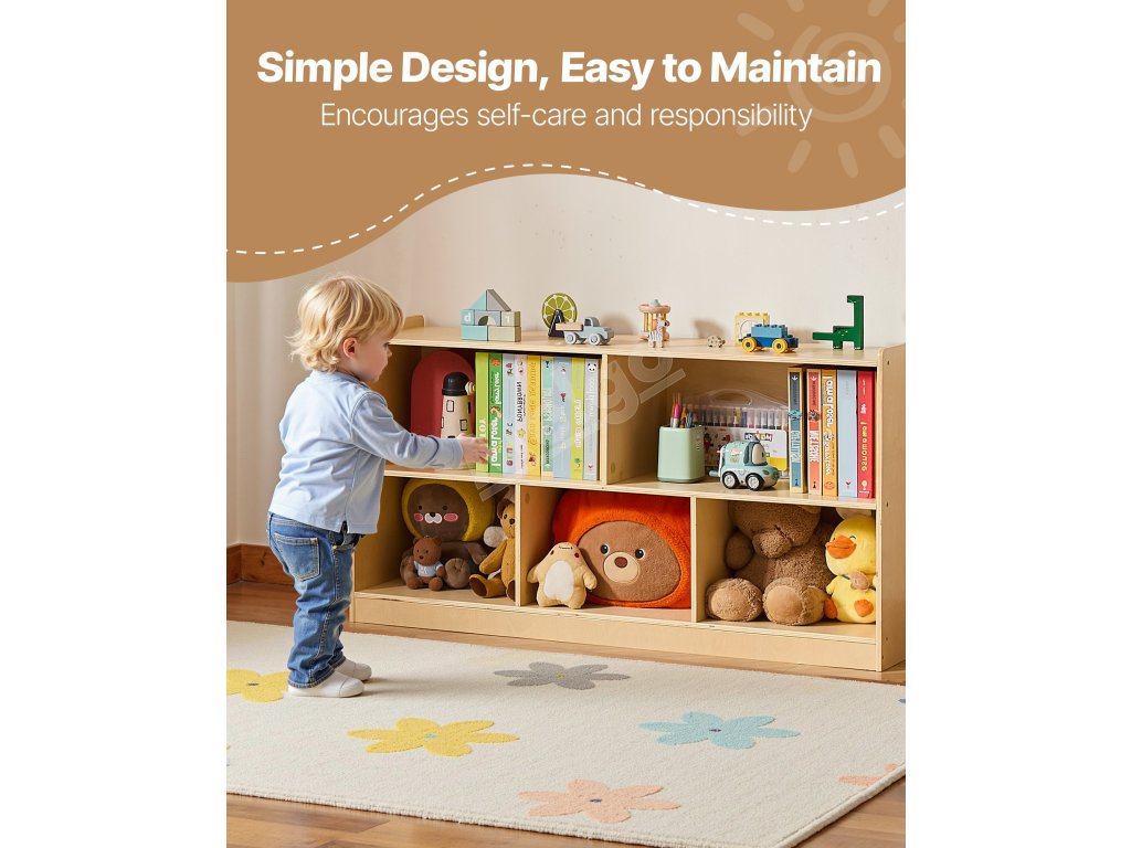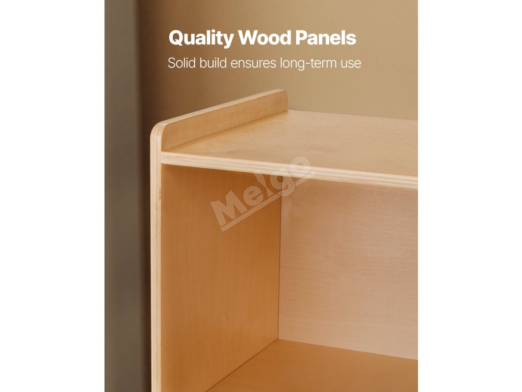 Táto polica montessori pojme oblečenie, batohy, školské potreby a osobné veci. Priestranné priehradky a flexibilné usporiadanie pomáhajú udržiavať poriadok v akomkoľvek priestore, v triede, spálni alebo herni a uľahčujú deťom samostatné upratovanie.