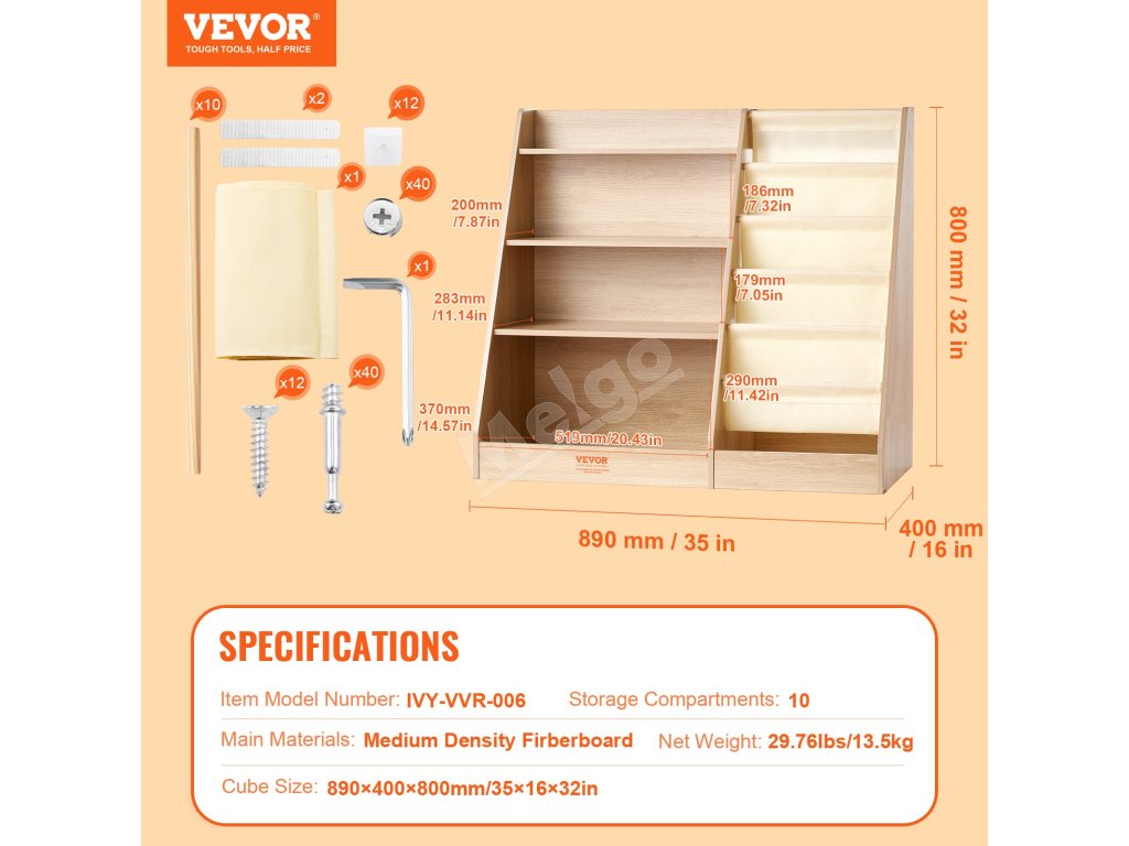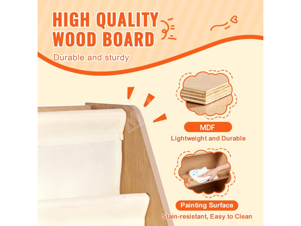 Náš úložný regál na hračky, vyrobený z ľahkej MDF, ponúka spoľahlivú pevnosť a stabilitu, aby vydržal každodenné používanie a sprevádzal ich počas rastu.