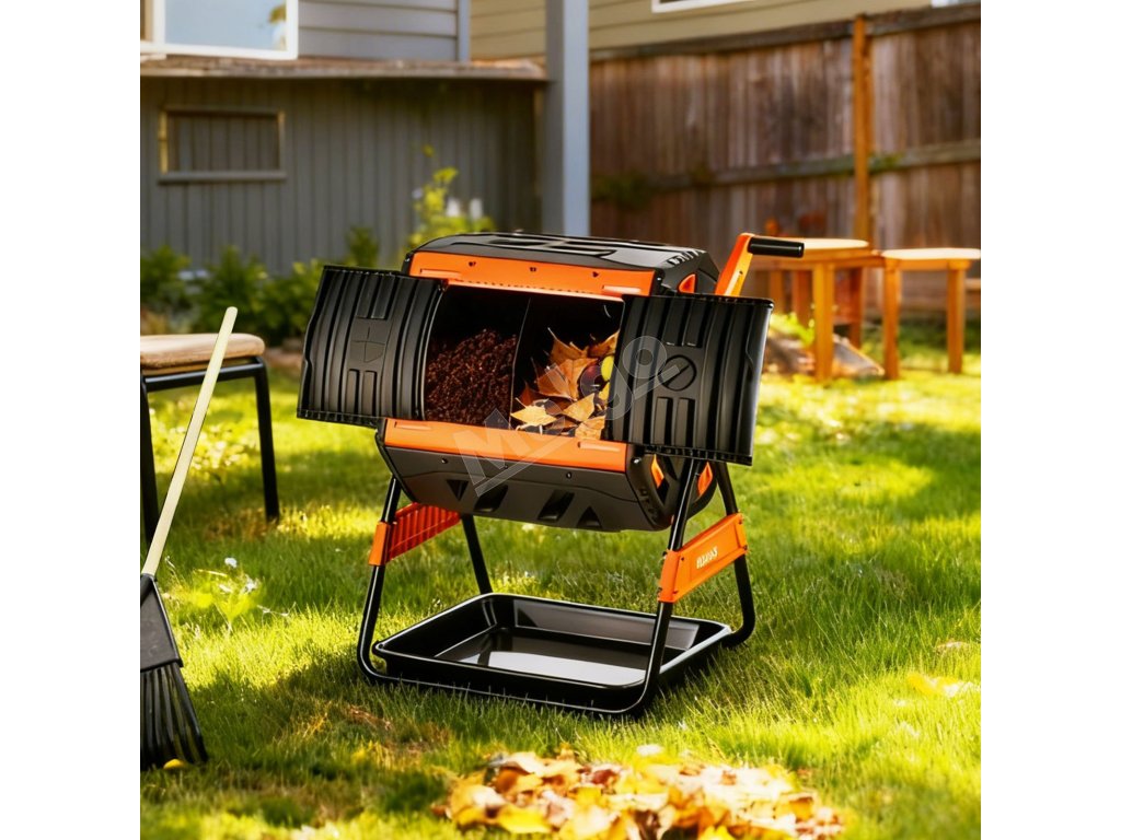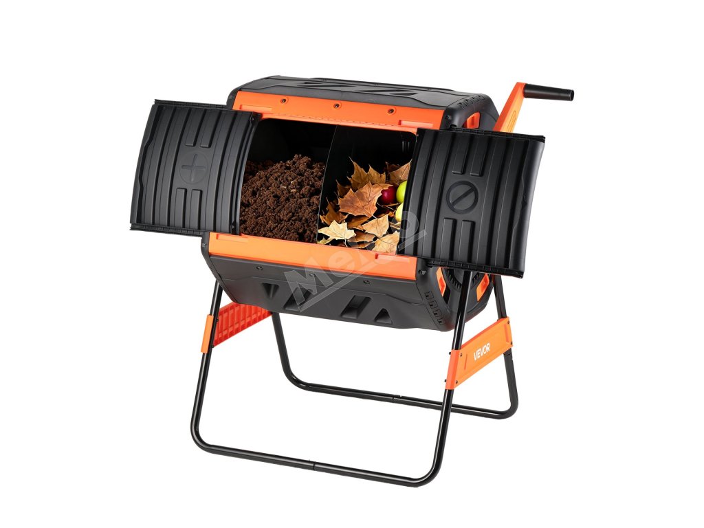 Tento dvojkomorový kompostér na vonkajšie použitie umožňuje, aby jedna strana kompostovala, zatiaľ čo druhá sa plní, čím sa kompostovací cyklus udržiava aktívny po celý rok bez čakania medzi jednotlivými dávkami.
