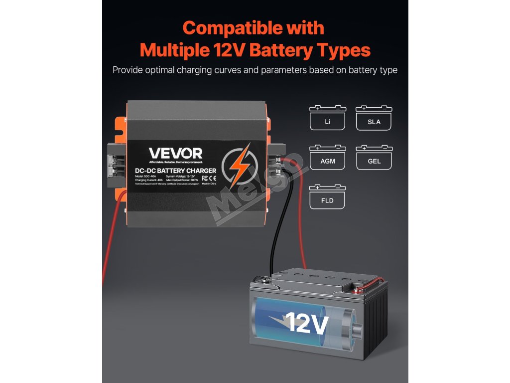 Dc na dc nabíjačka 12V 40A 500W pre olovené a lítiové batérie
