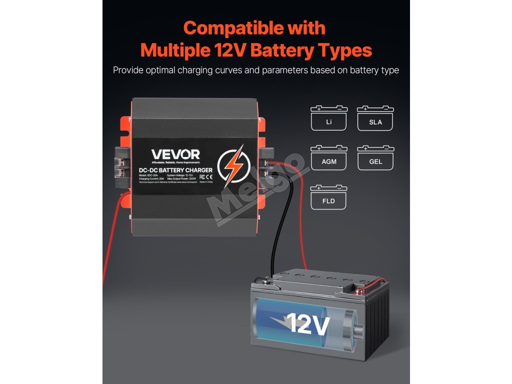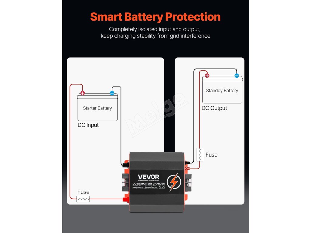 Táto nabíjačka na jednosmerný prúd využíva energiu z generátora na nabíjanie pohotovostnej batérie vášho obytného vozidla počas cesty, čím zabezpečuje nepretržité napájanie počas celej cesty.