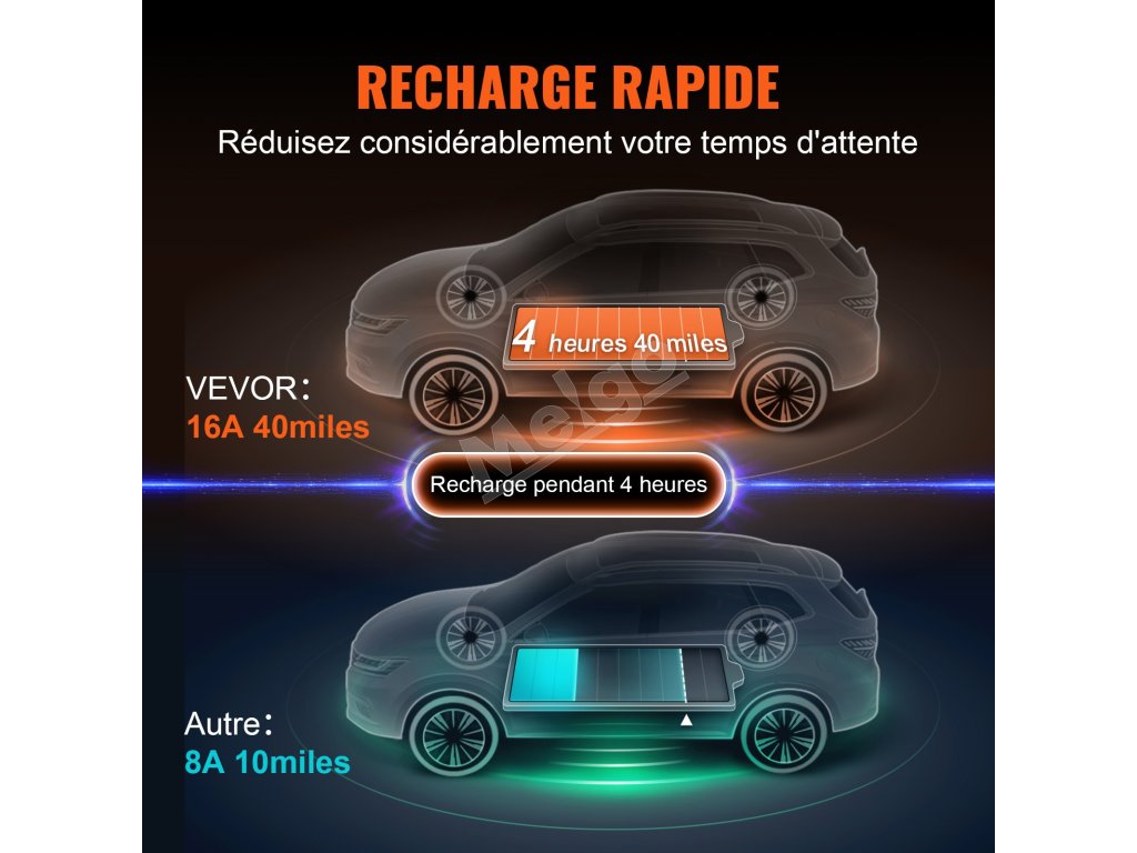 Prenosná nabíjačka EV VEVOR 16A je kompatibilná s väčšinou elektrických vozidiel, ktoré spĺňajú normu IEC 62196. Vďaka prenosnej nabíjačke EV VEVOR a 4-stupňovej regulácii prúdu môžete stráviť viac času vyrážaním za zábavou a menej času čakaním, keď ste na dobrodružnej ceste a kempujete.