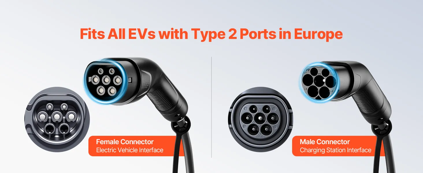 | Typ konektora | Zástrčka IEC 62196 (samec) + zásuvka IEC 62196 (samica) |