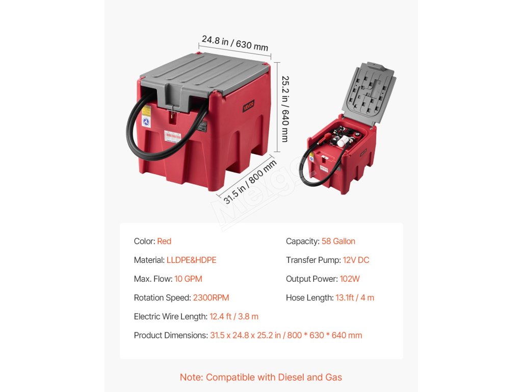 Prenosná nádrž 220L na naftu a benzín 10 GPM, 12V pumpa, 13.1ft hadica