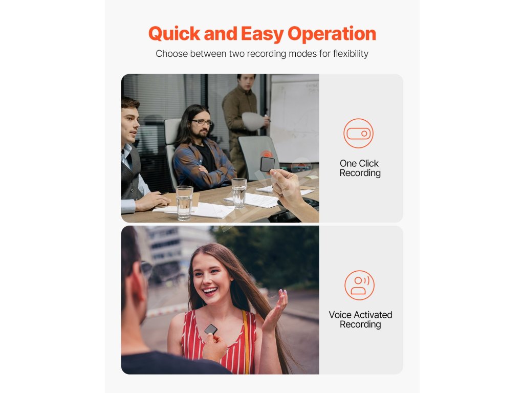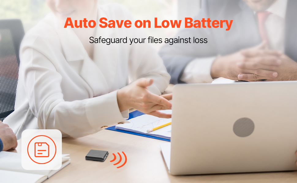 Tento prenosný diktafón vybavený 150 mAh batériou poskytuje až 10 hodín nepretržitého nahrávania. Navyše je vybavený inteligentnou detekciou batérie, ktorá automaticky ukladá súbory, keď sa batéria vybije, čo je ideálne na zaznamenávanie dlhých stretnutí, prednášok alebo osobných poznámok.