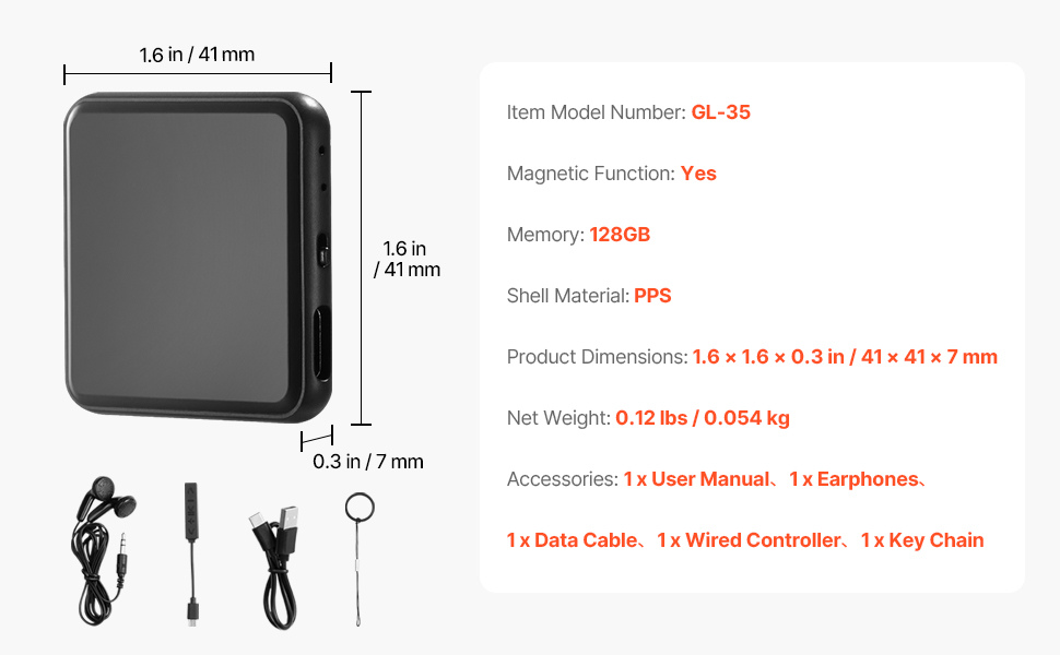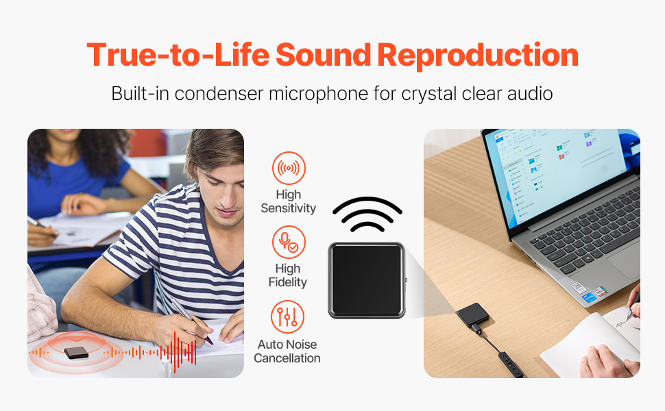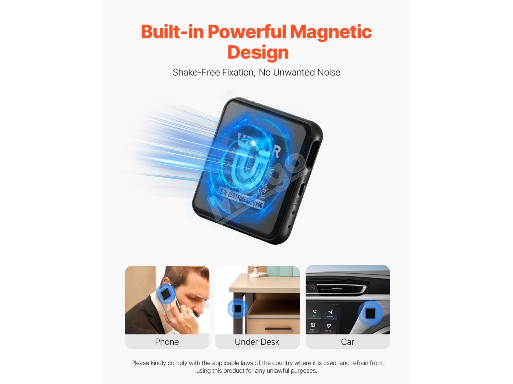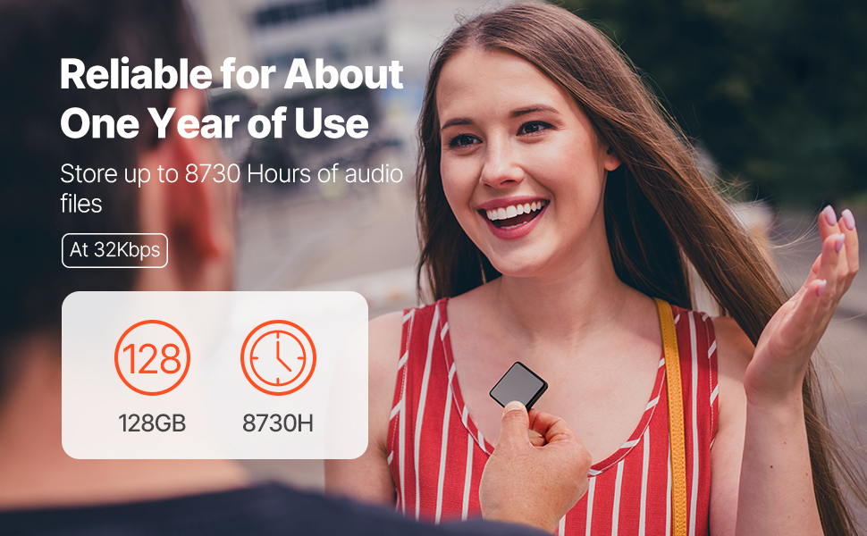 Náš digitálny diktafón s rozmermi iba 1,6 x 1,6 x 0,3 palca a hmotnosťou 0,12 kg sa ľahko zmestí do vrecka a môžete ho používať aj na cestách. Vďaka 128GB úložisku pojme až 8730 hodín zvuku s rýchlosťou 32 Kb/s. batéria s kapacitou 150 mAh umožňuje 10 hodín nepretržitého nahrávania. Pripojenie k počítaču alebo smartfónu.