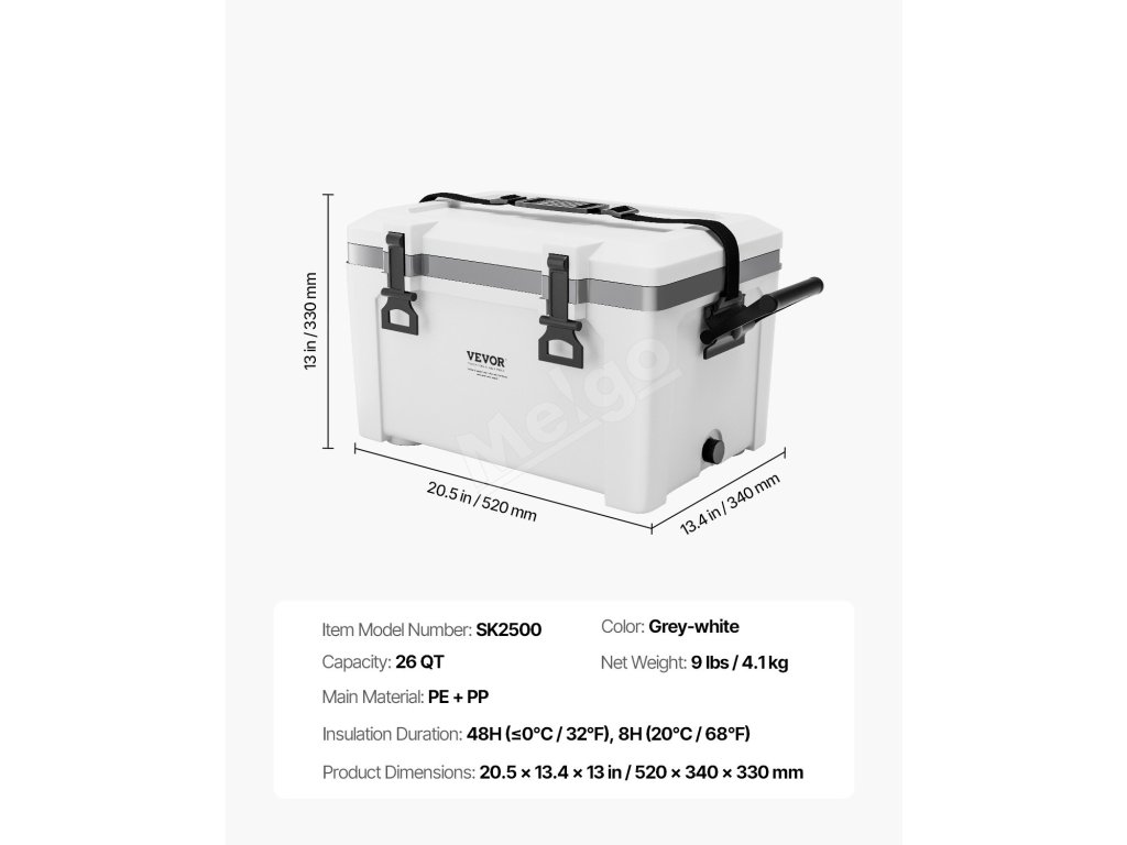 Prenosný chladiaci box 26 QT, tvrdý, s izoláciou, držadlami a popruhom