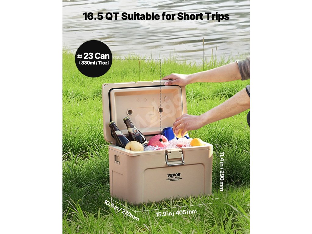 Prenosný tvrdý chladič 16.5 QT izolovaný, ľahký, s rúčkami a držiakom