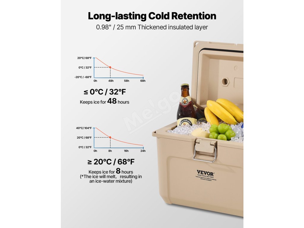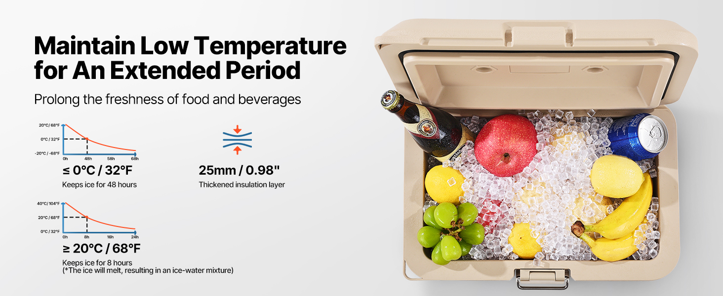 Chladiaci box je vyrobený z vysokokvalitných izolačných materiálov, ktoré zabezpečujú stabilnú vnútornú teplotu. Udržiava nízke teploty počas dlhšieho obdobia, čím udržiava potraviny a nápoje dlhšie čerstvé.