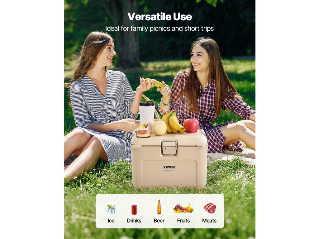 Túto prenosnú chladničku možno použiť na izoláciu a chladenie potravín a nápojov. Dá sa spárovať s ľadovými balíčkami/vrecúškami na ľad a je ideálny na krátke výlety alebo rodinné pikniky.