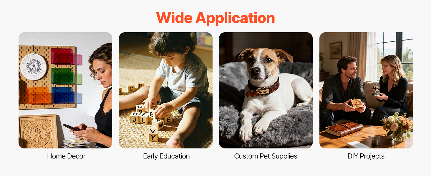 Od dekorácií do domácnosti a potrieb pre domáce zvieratá až po projekty DIY, náš stolný ručný gravír premení vaše nápady DIY na praktickejšie možnosti.