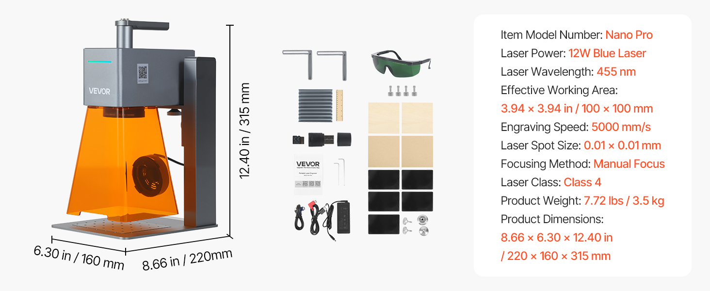 Prenosný laserový gravírovač 12W, 5000 mm/s, presnosť 0,01×0,01 mm
